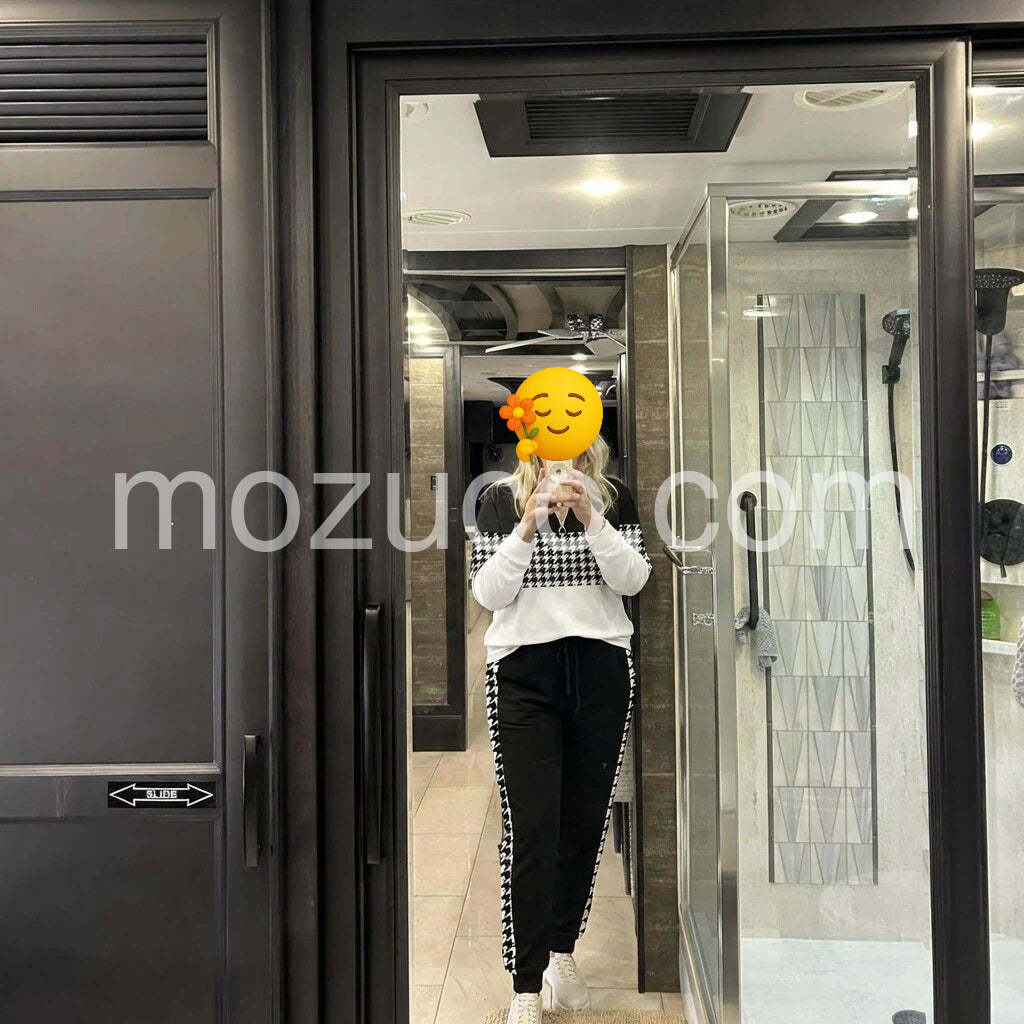 I am absolutely in love with this two-piece set! The houndstooth pattern is super chic and the material is incredibly soft. It is perfect for running errands or just lounging around the house. The zipper detail adds a nice touch.