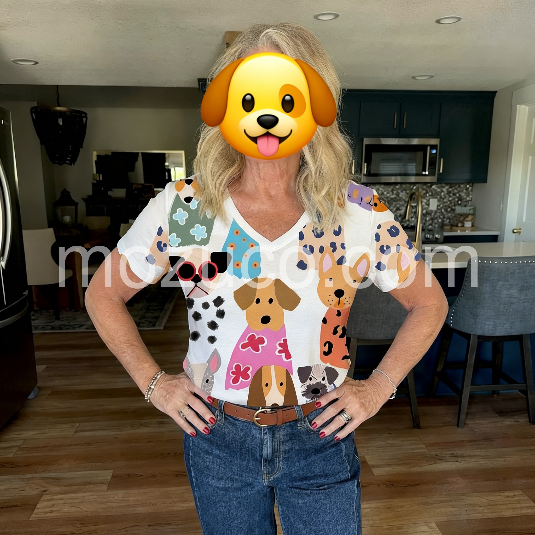 I loved, loved the shirt. The dogs print is well-made and vibrant. Nice loose fit and cute print. Fabric feels great. I will wash cold water, delicate cycle and select the “air dry” option on the dryer for a few minutes, then hang to dry the rest of the way.