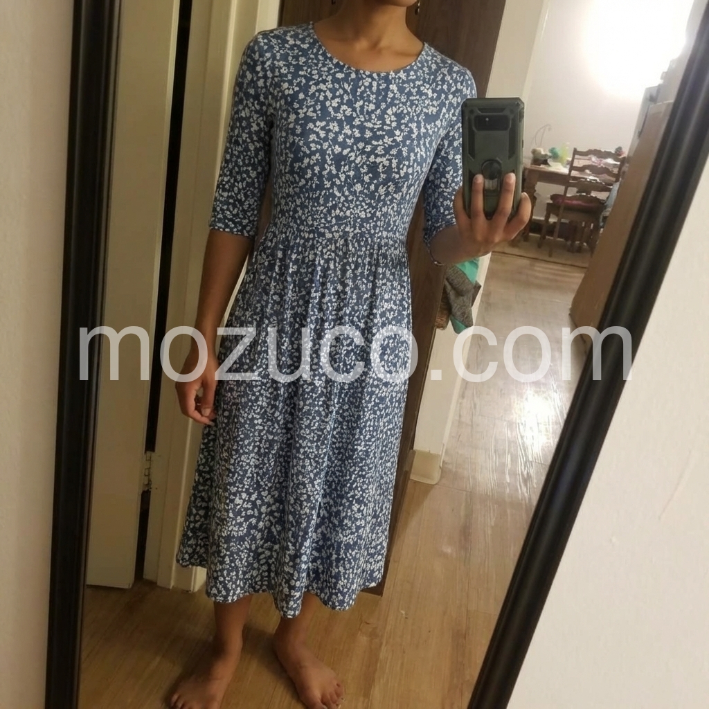 This dress was designed to be your go-to for effortless, everyday elegance. The subtle blue floral print is timeless, while the flowy A-line silhouette flatters every body type.