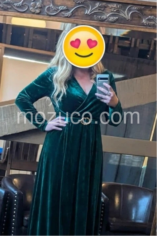 Did I need another dress? No. Did I need this one for a wedding? Absolutely. 😍 The velvet material feels luxe, the emerald color is gorgeous, and it’s way more flattering than I expected. I got so many compliments wearing it. The only con for me is the deep V-cut. I have a larger chest, so I layered a tank underneath and it worked perfectly. Other than that, this dress exceeded my expectations! The belt was also a gift. thank you :) 10/10 would recommend.