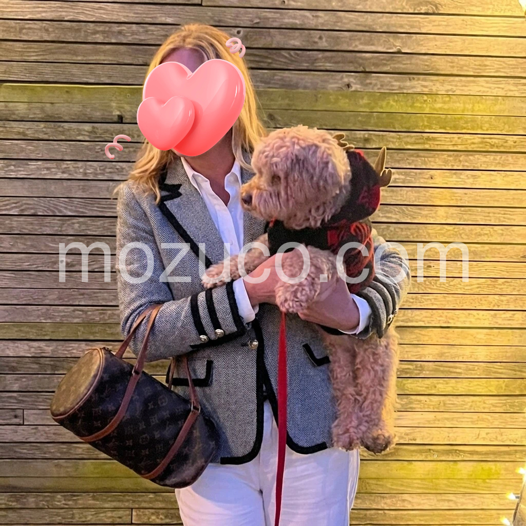 Chic Herringbone Blazer with Black Trim and Classic Double Breasted Design