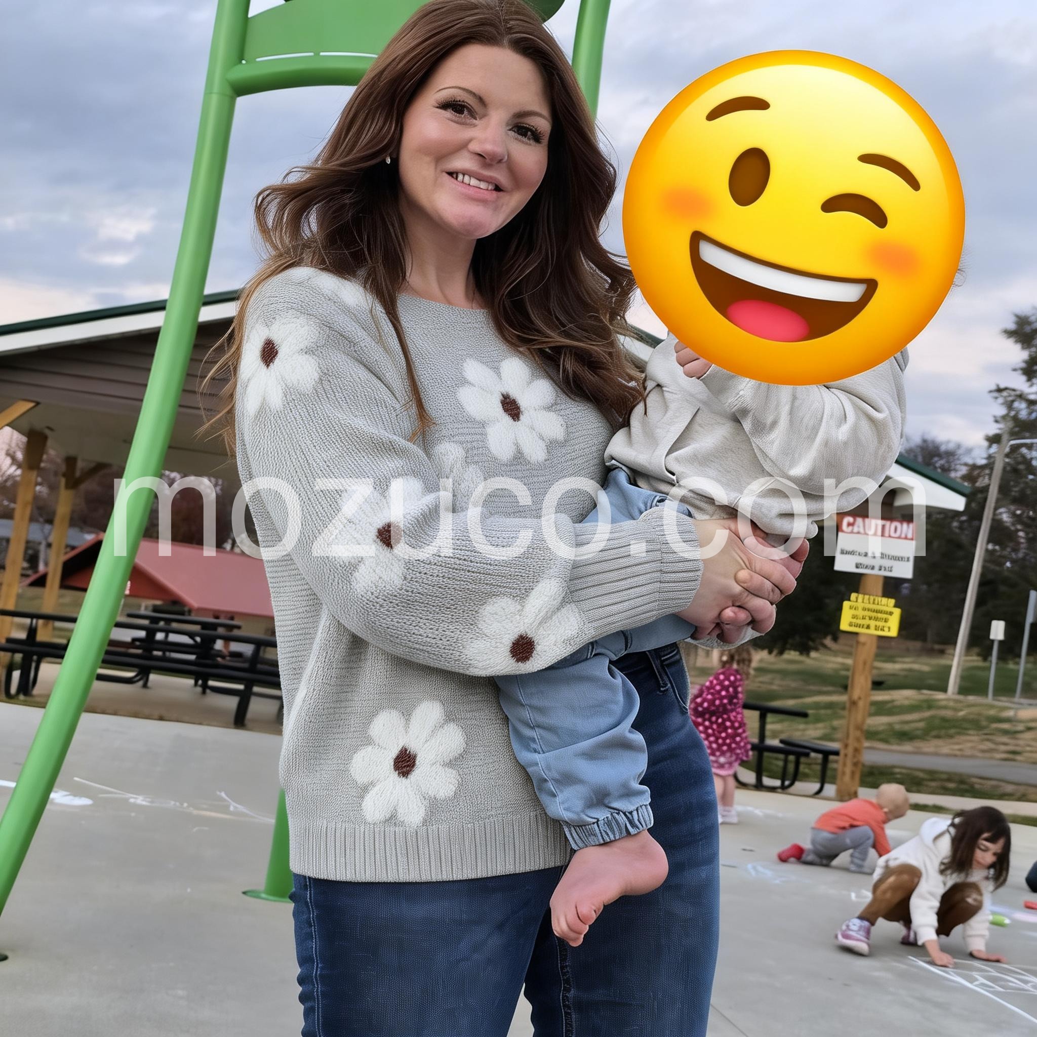 I am absolutely in love with this sweater! The daisy pattern is so cute and adds a lovely touch to a simple grey knit. It is super soft and pairs perfectly with my favorite jeans.