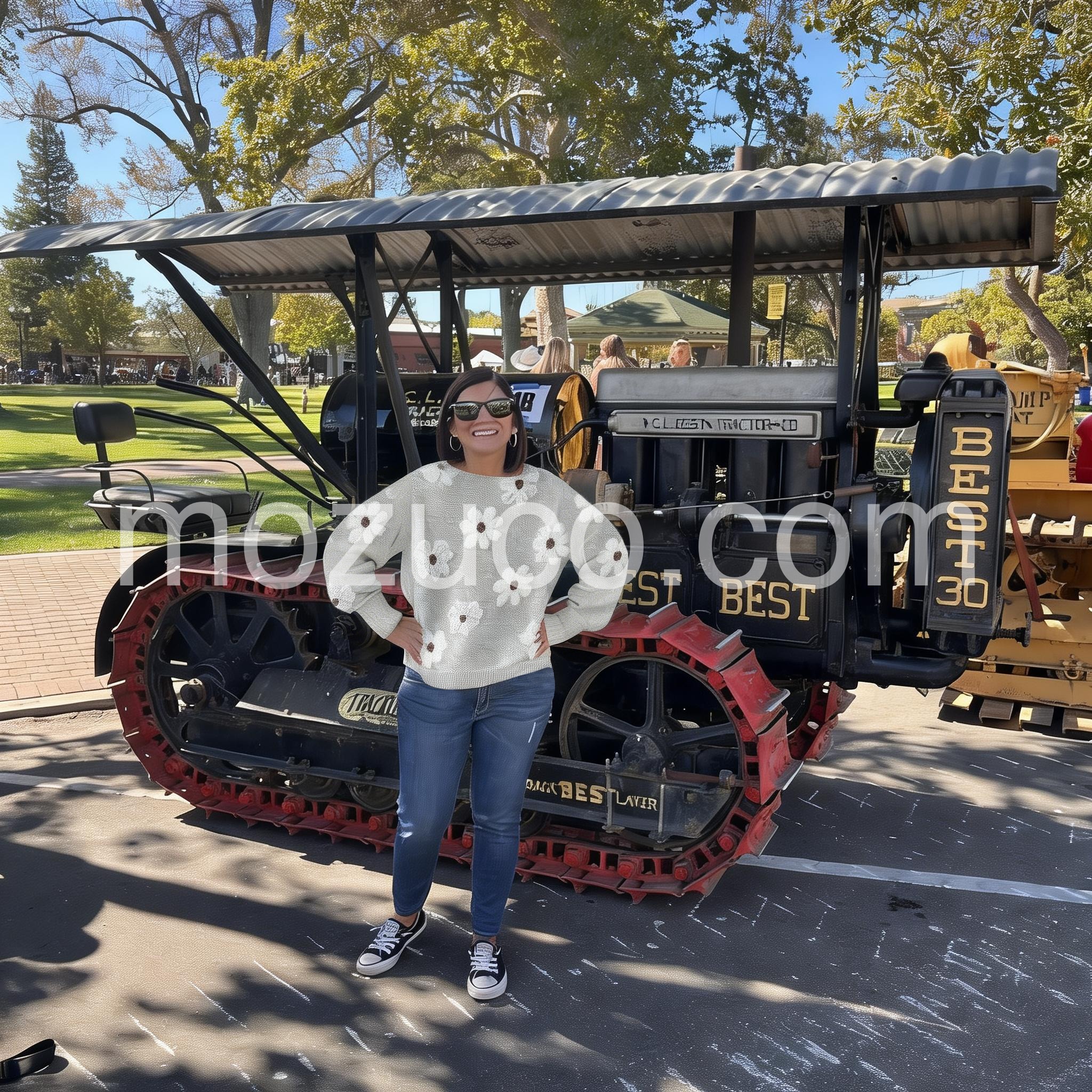 This is my new go-to sweater for weekend errands. The light grey goes with everything, and the white daisies make it fun. Very happy with this purchase!