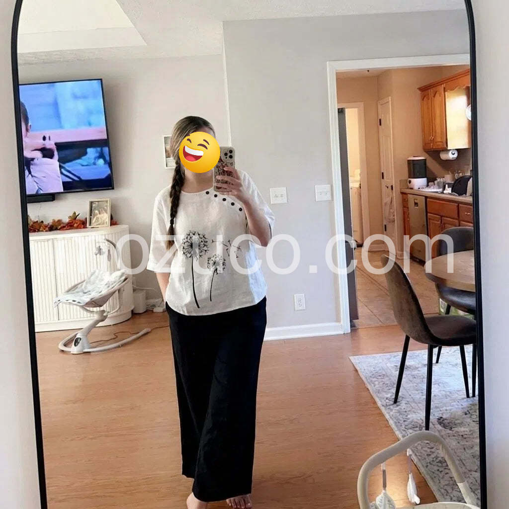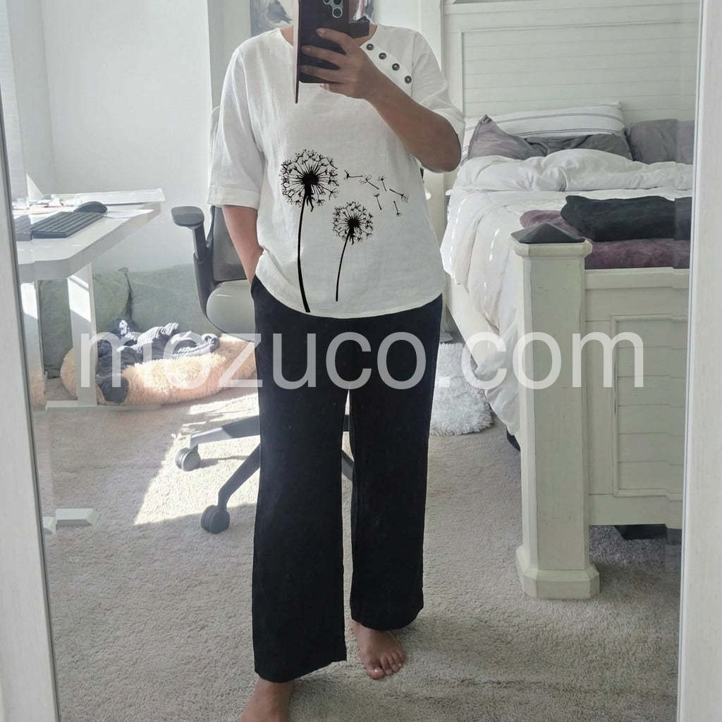 Every time I wear this outfit, someone asks me where I got it! The dandelion graphic is adorable and printed well. I wash it on delicate and hang dry, and it still looks brand new.