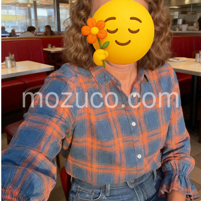 Absolutely love the ruffled sleeves! It takes a standard plaid shirt and makes it so much more feminine and fun. Fits true to size.