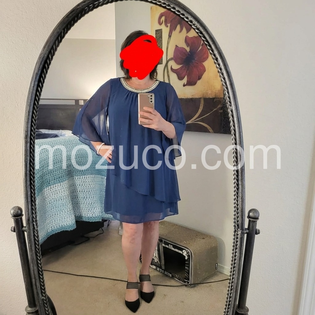I bought this for my nephew's wedding and got so many compliments! The beaded neckline is gorgeous and saves me from needing a necklace. The chiffon layers drape beautifully and hide any tummy insecurities. Highly recommend!