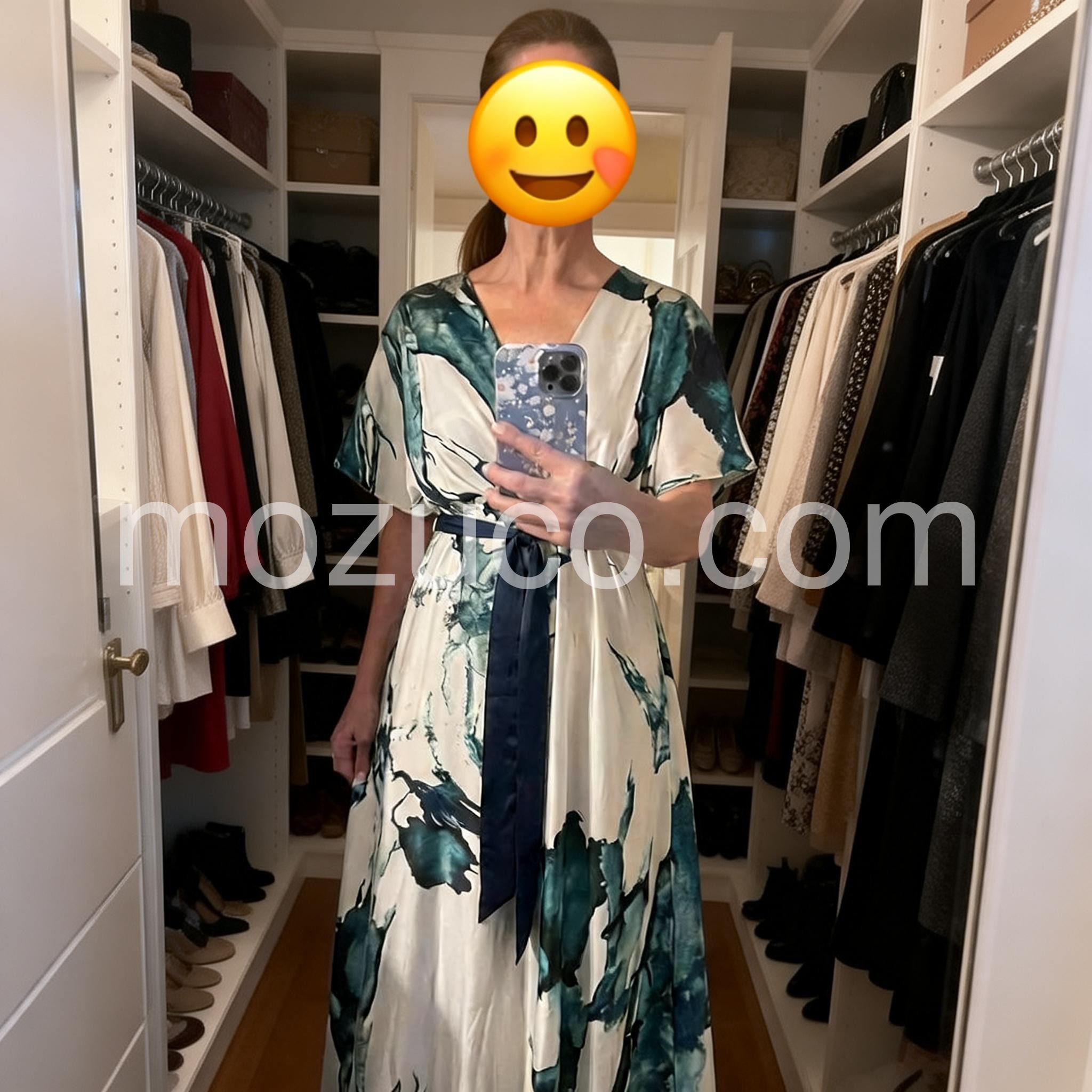 Absolutely stunning print. The teal and white watercolor design looks even better in person. It feels like a high-end designer piece but at a fraction of the cost. Perfect for a summer wedding guest outfit.