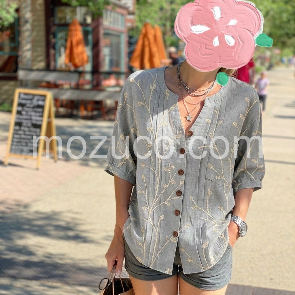 Love this top! The material feels like a soft linen blend, perfect for warmer weather. The leaf pattern is delicate and beautiful, and the fit is incredibly comfortable.