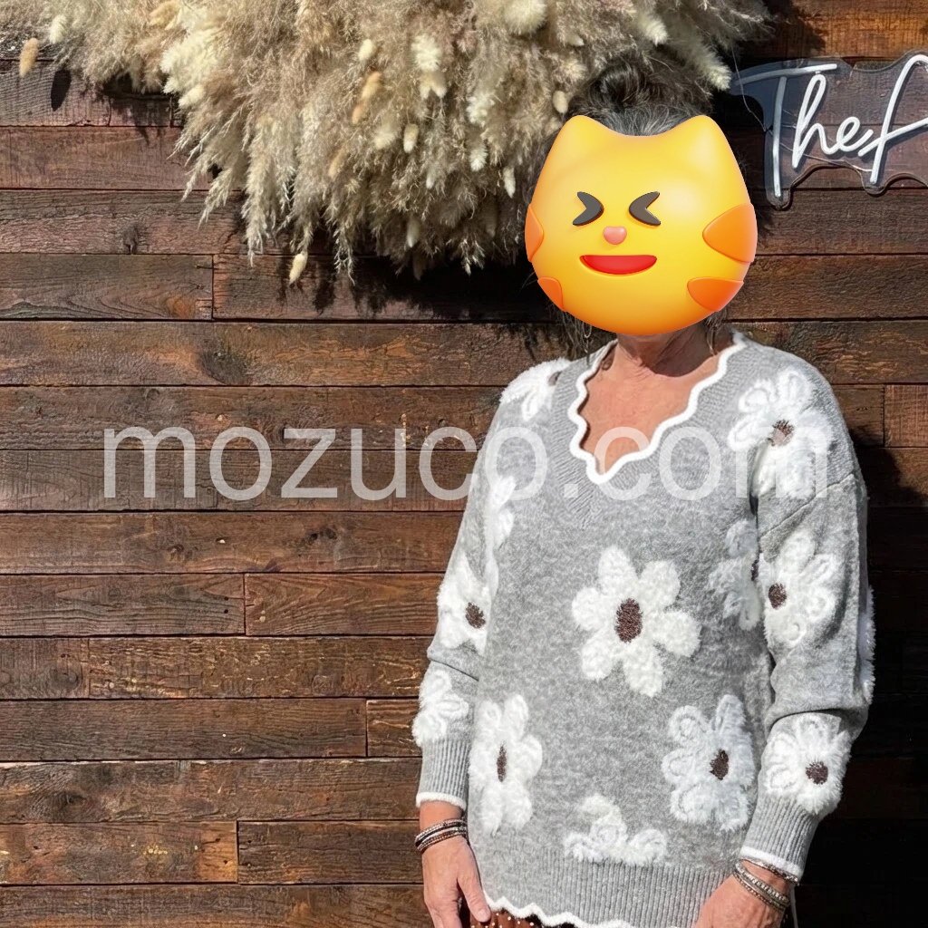 This Grey V-Neck Floral Print Sweater will keep you fashionably warm all season. With its classic v-neck design and floral print, this sweater has the perfect combination of style and comfort. Perfect for any occasion, this sweater is sure to keep you looking stylish.