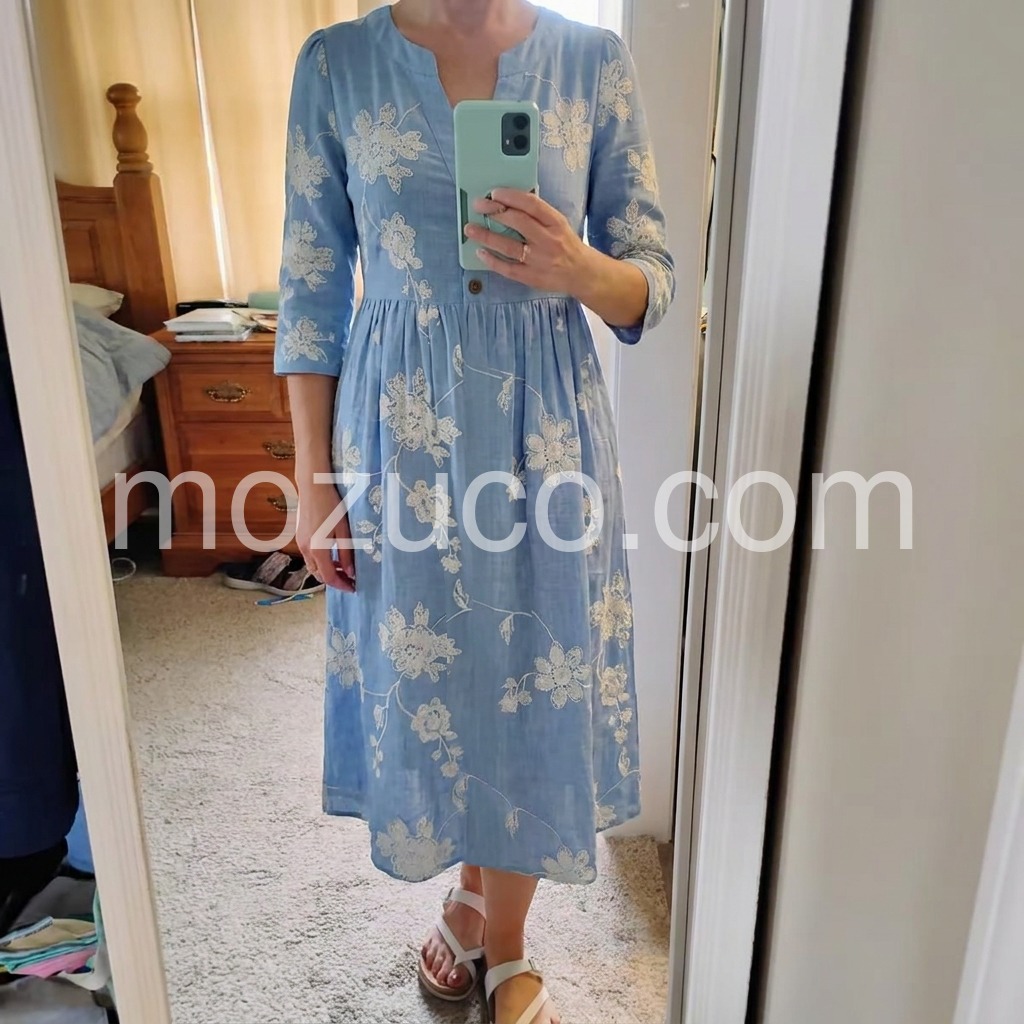 Wore this on my beach vacation and received so many compliments! The 3/4 sleeves are great for cooler evenings, and the waistline is very forgiving. Highly recommend!