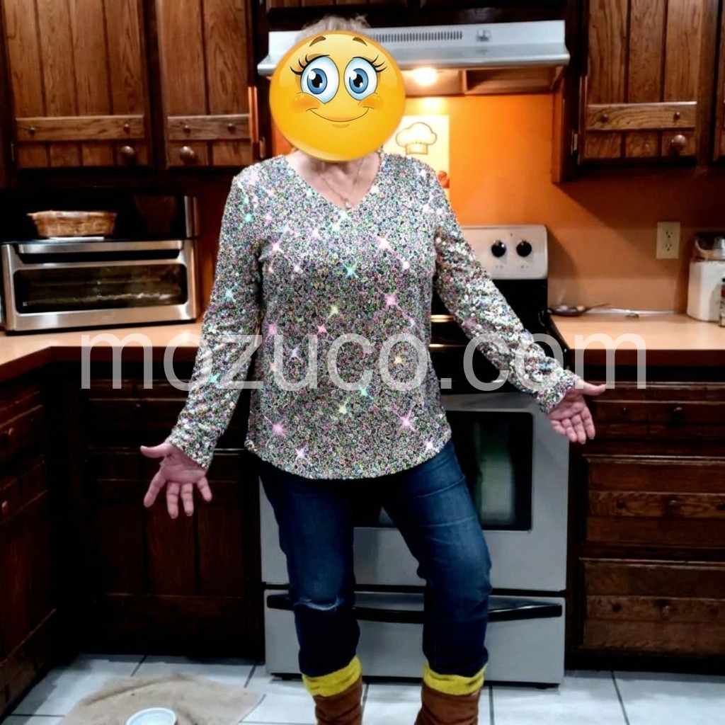 Very beautiful and comfy. The cut of the v-neck is perfect. It fits a necklace very nicely. It doesn’t plunge and it’s not too high. Just right.