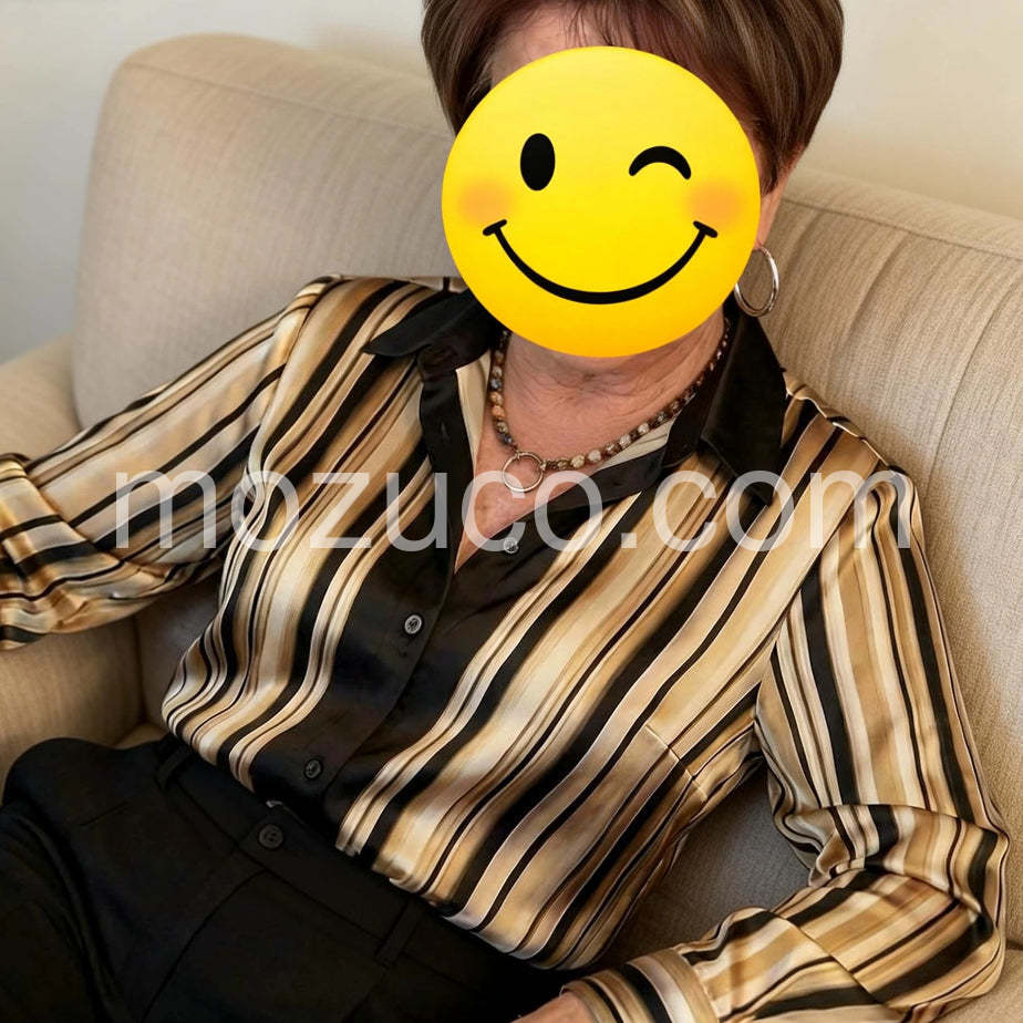 I am absolutely loving this striped blouse! 😍 The fit is fantastic, and the fabric feels so luxurious against my skin. It looks incredibly chic! ✨ Definitely a new favorite in my wardrobe. Highly recommend! 👍\"