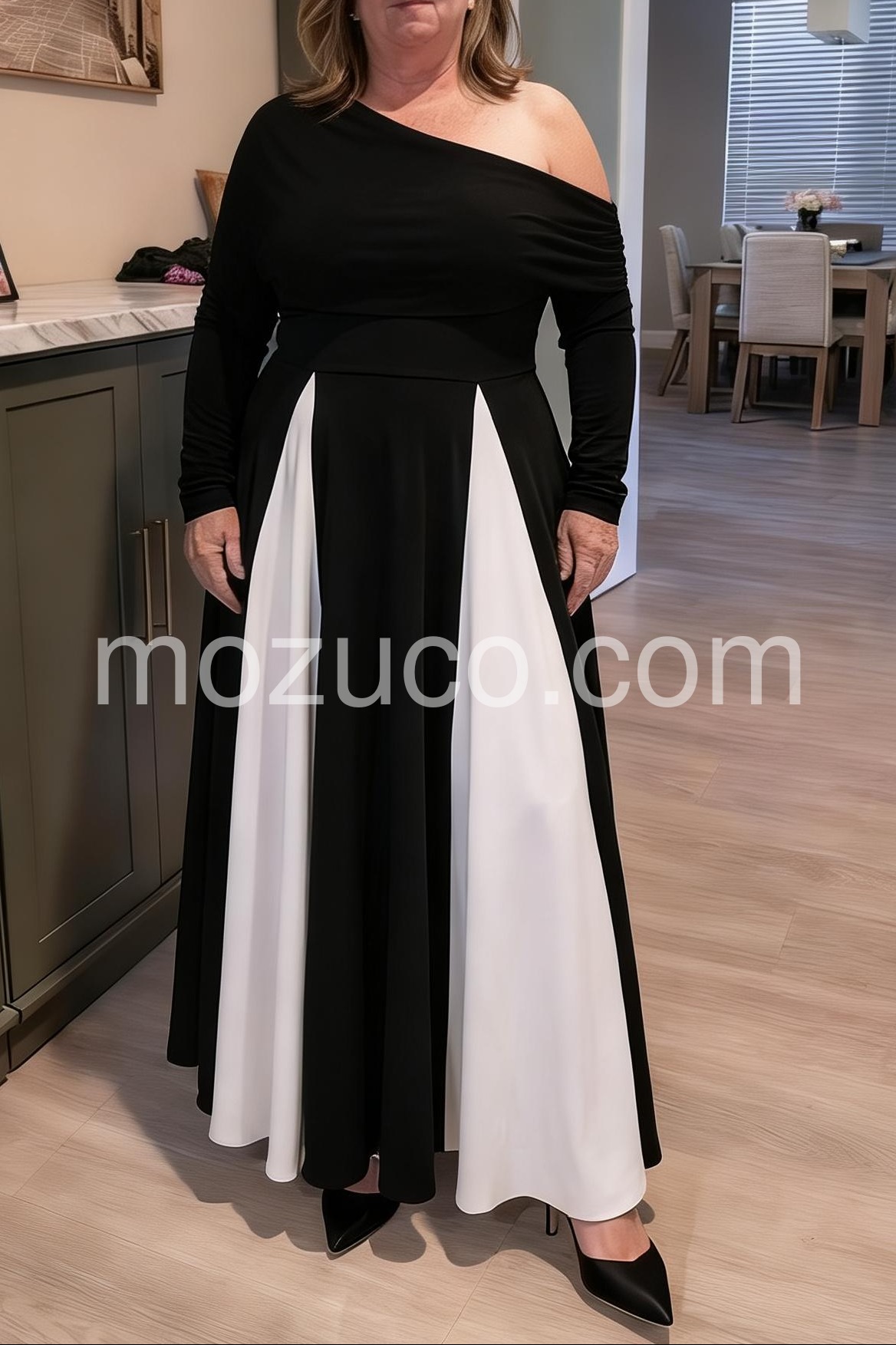 This Black and White Color Block Maxi Dress is the perfect blend of modern and classic styles. Its sleek and stylish design is perfect for any occasion and its color blocking adds a touch of elegance. Made with high-quality materials, it offers both comfort and sophistication.