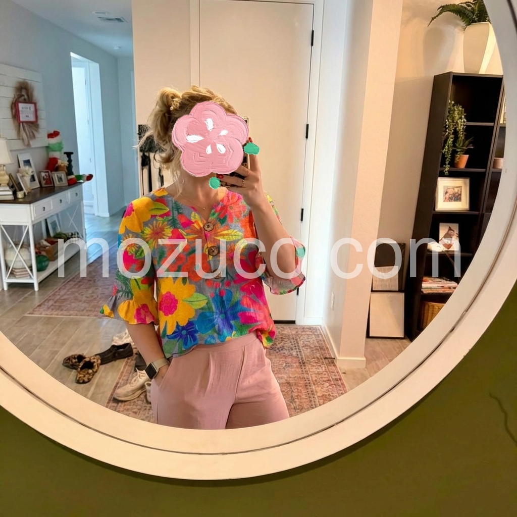 Such a fun and colorful top! The pattern is beautiful and the little flare at the end of the sleeves is adorable. It is casual enough for running errands but can easily be dressed up with nice pants for the office. Will be buying more colors!