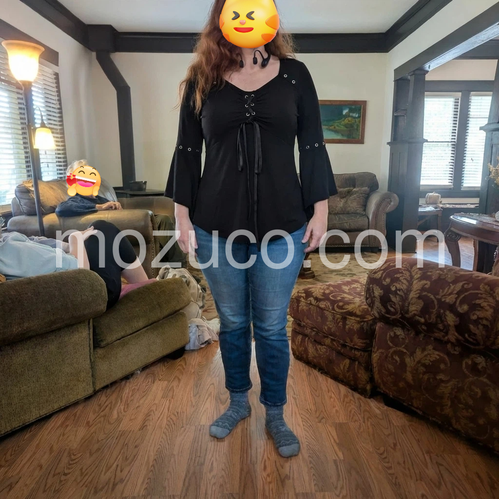 This top is exactly what I needed for a night out! The V-neckline is flattering, and the lace-up ribbon makes it look so elegant. The bell sleeves are flowy and don’t restrict movement at all. The fit is true to size, and the asymmetrical hem adds a stylish touch. I will definitely be wearing this on repeat!