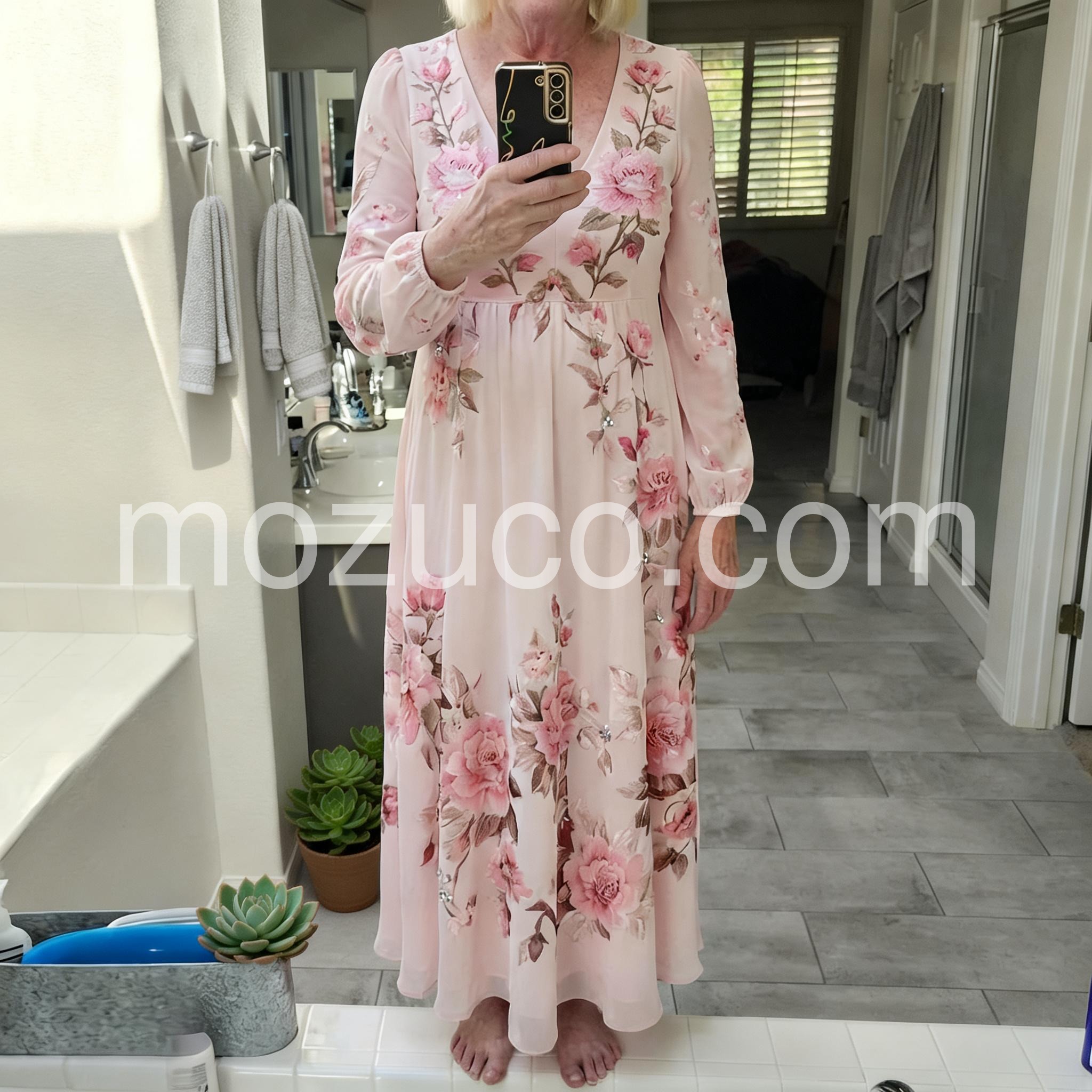 I wore this as a wedding guest and it was a hit! It is elegant enough for a formal event but still comfortable. The long sleeves are breathable enough to not get too hot, and the floral pattern is gorgeous.