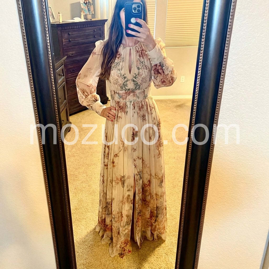 Such a beautiful dress for autumn photoshoots. The long sleeves are great for cooler weather, but the fabric is breathable. The fit is incredibly flattering.
