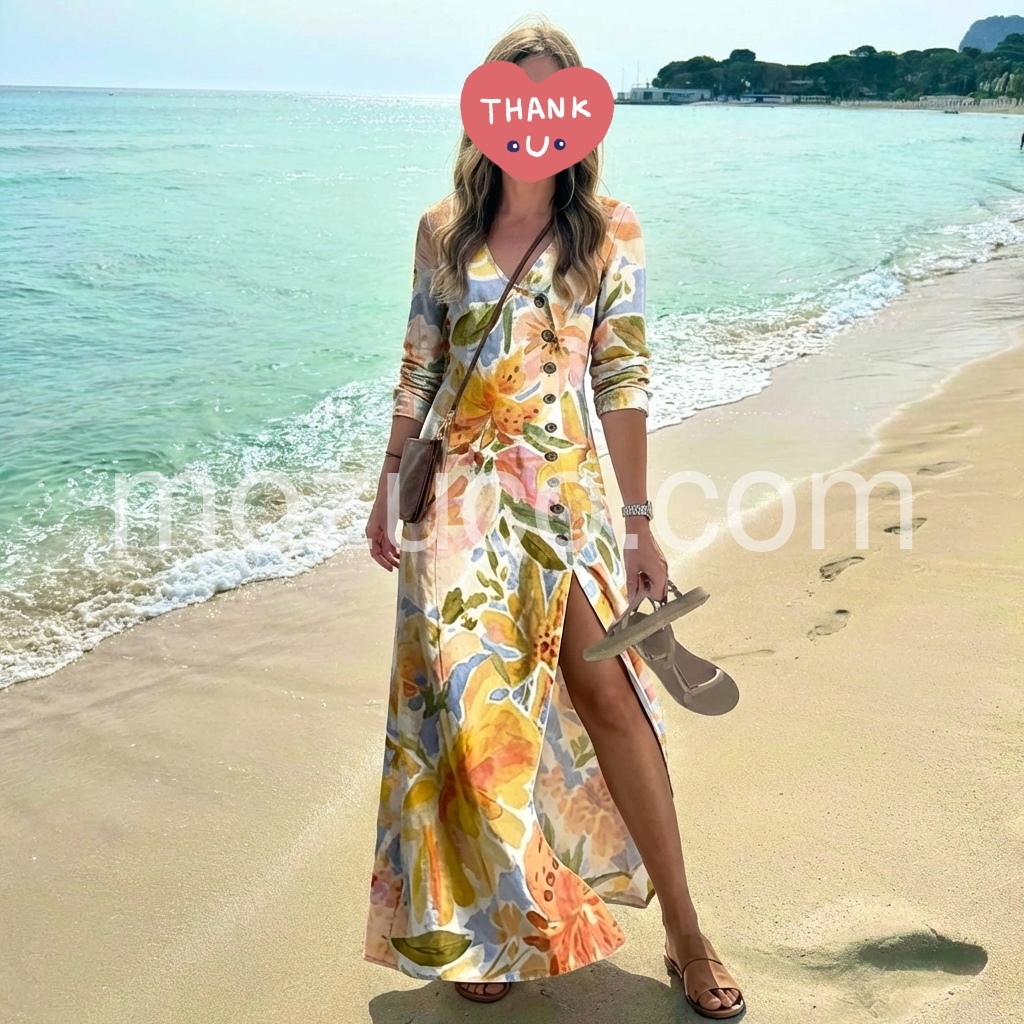 This dress exceeded my expectations. I love that the buttons are functional so you can create a slit as high or as low as you want. The long sleeves make it great for transitioning from summer to fall. Highly recommend!