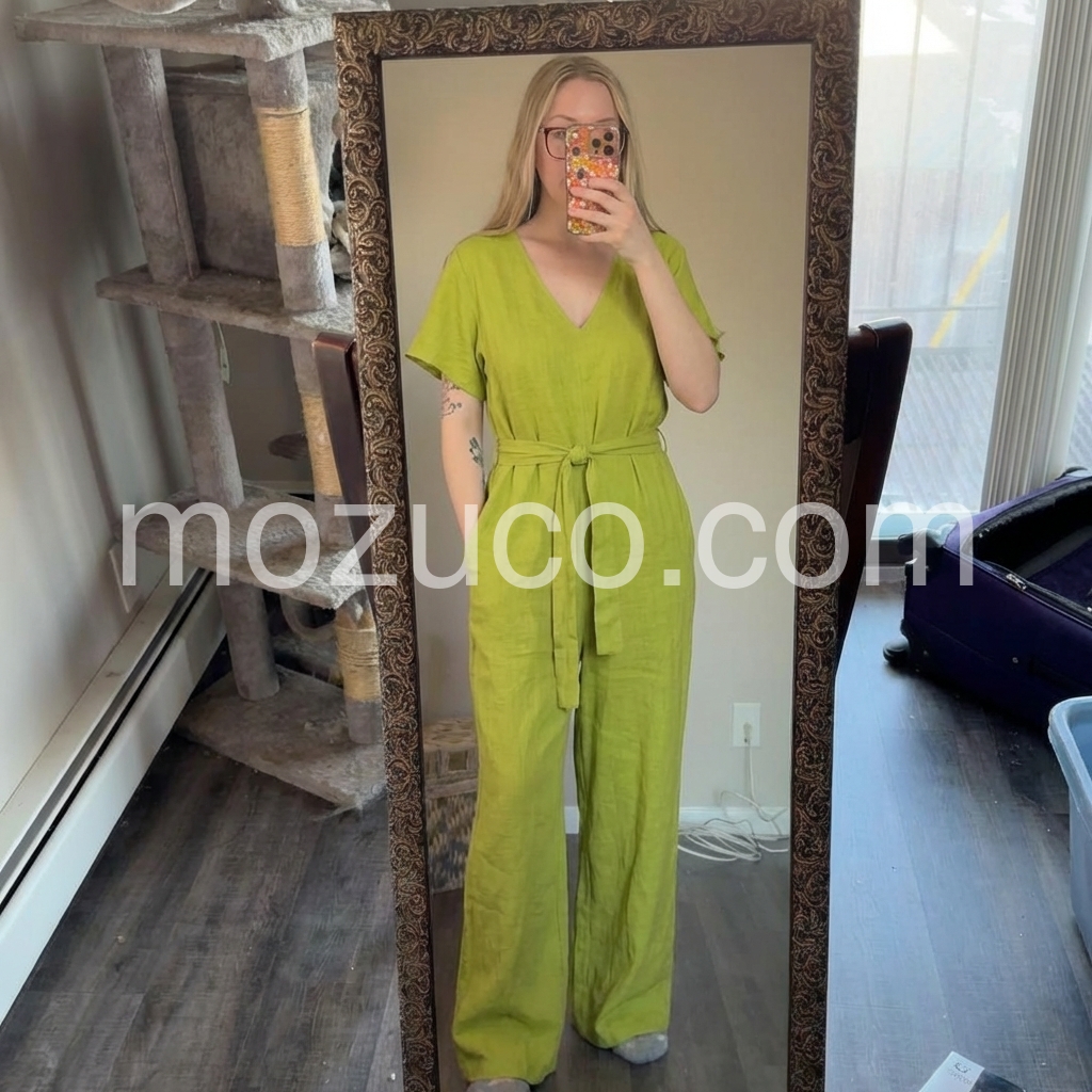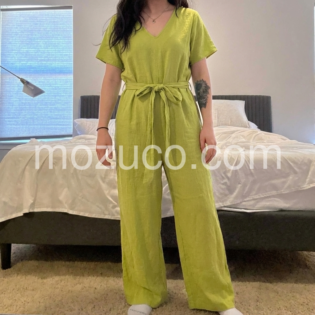 This jumpsuit has become my go-to. The fabric is lightweight and comfortable, and the loose wide leg design makes it feel airy and breathable. I appreciate the thoughtful details like the V-neck and waist belt, which make it look styled rather than basic. It’s easy to dress up with jewelry or down for errands.
