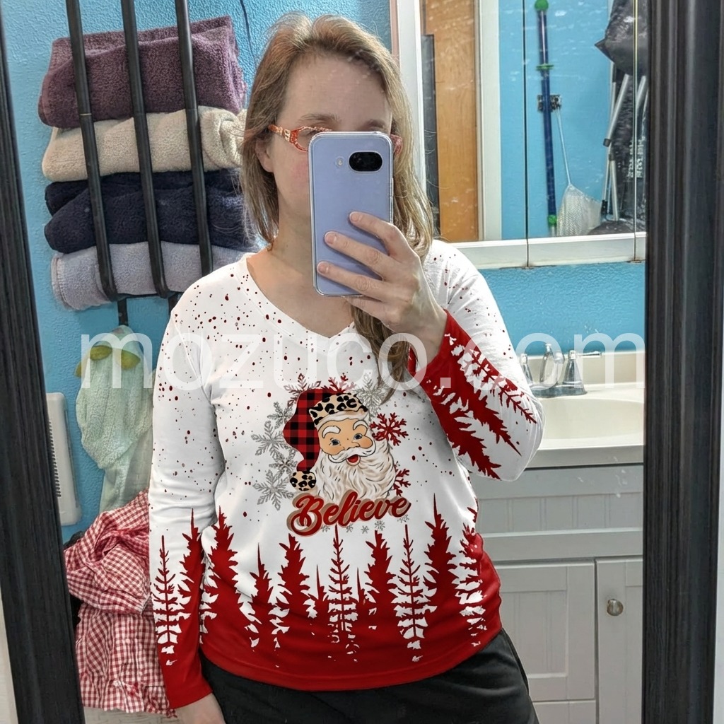 Love this shirt. Perfect for the holiday season for casual outings. Fits perfect.
