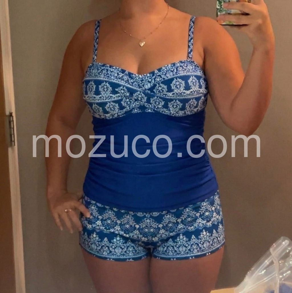 Really cute design. Fits really well, especially with the adjustable straps. I like the bunching material, makes it very flattering. Quality is pretty high.
