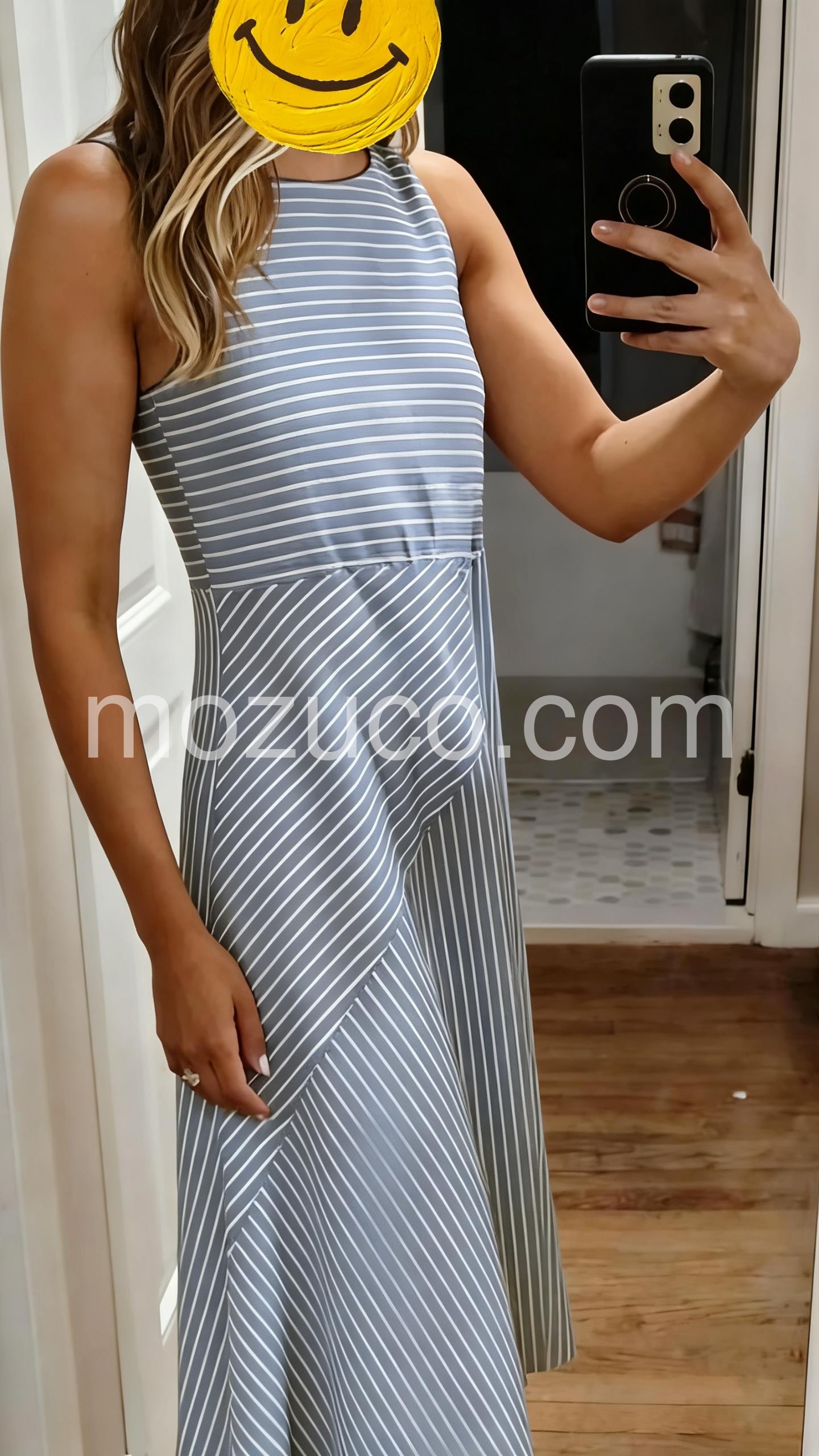 The A-line flow of the skirt hides my tummy perfectly. The sleeveless cut is very flattering on the arms. The unique stripe pattern is a huge plus.