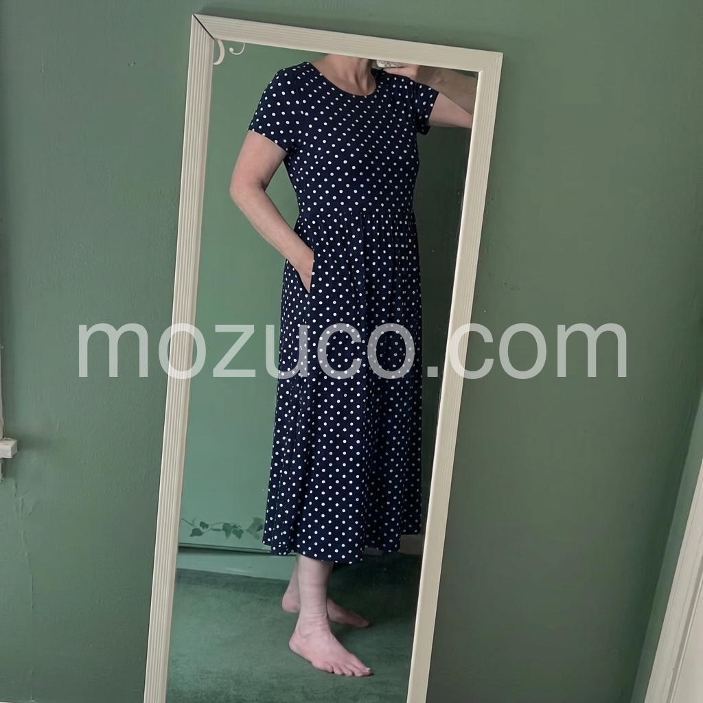 Wore this out to a weekend brunch and got so many compliments. The polka dot print is classic and never goes out of style. The fact that I can slip my phone into the deep pocket makes it a 10 out of 10.
