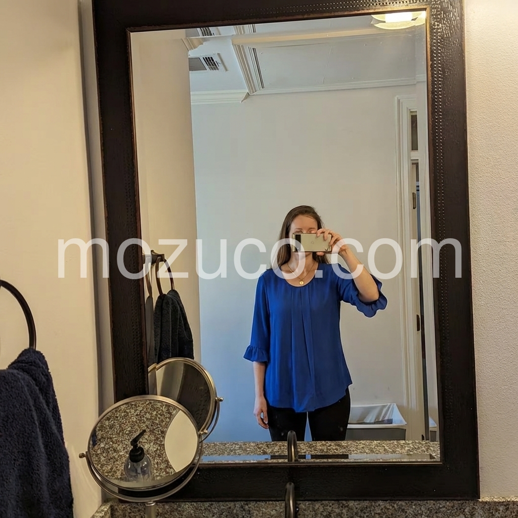 I have received so many compliments on this blouse at work. It washes well without shrinking or losing its gorgeous blue color.