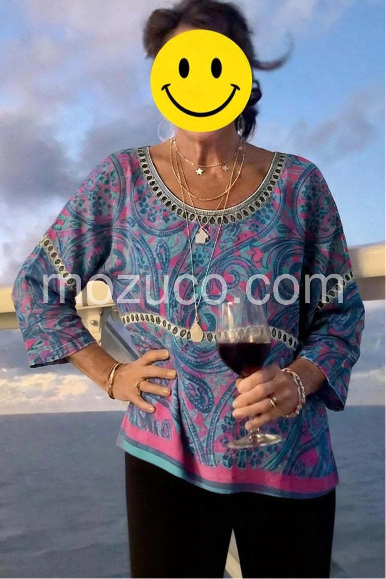 I am in love with the bohemian style of this blouse. It is incredibly soft and drapes beautifully. I will definitely be ordering this in more patterns if they have them!