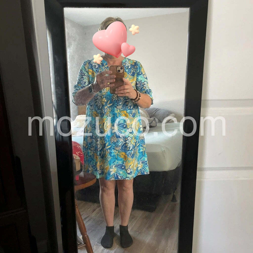 Love the bold floral pattern and the relaxed but feminine silhouette. The fabric drapes nicely, and the sleeve length is just right. Great for casual gatherings, brunches, or a seaside vacation. Would recommend to friends.