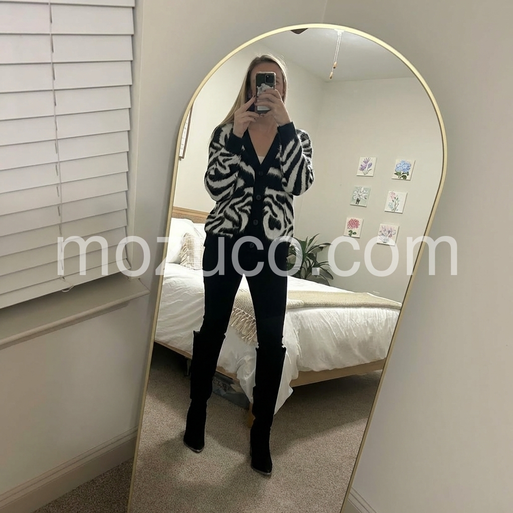 Bold Zebra-Print Knit Cardigan In Soft Mohair Blend
