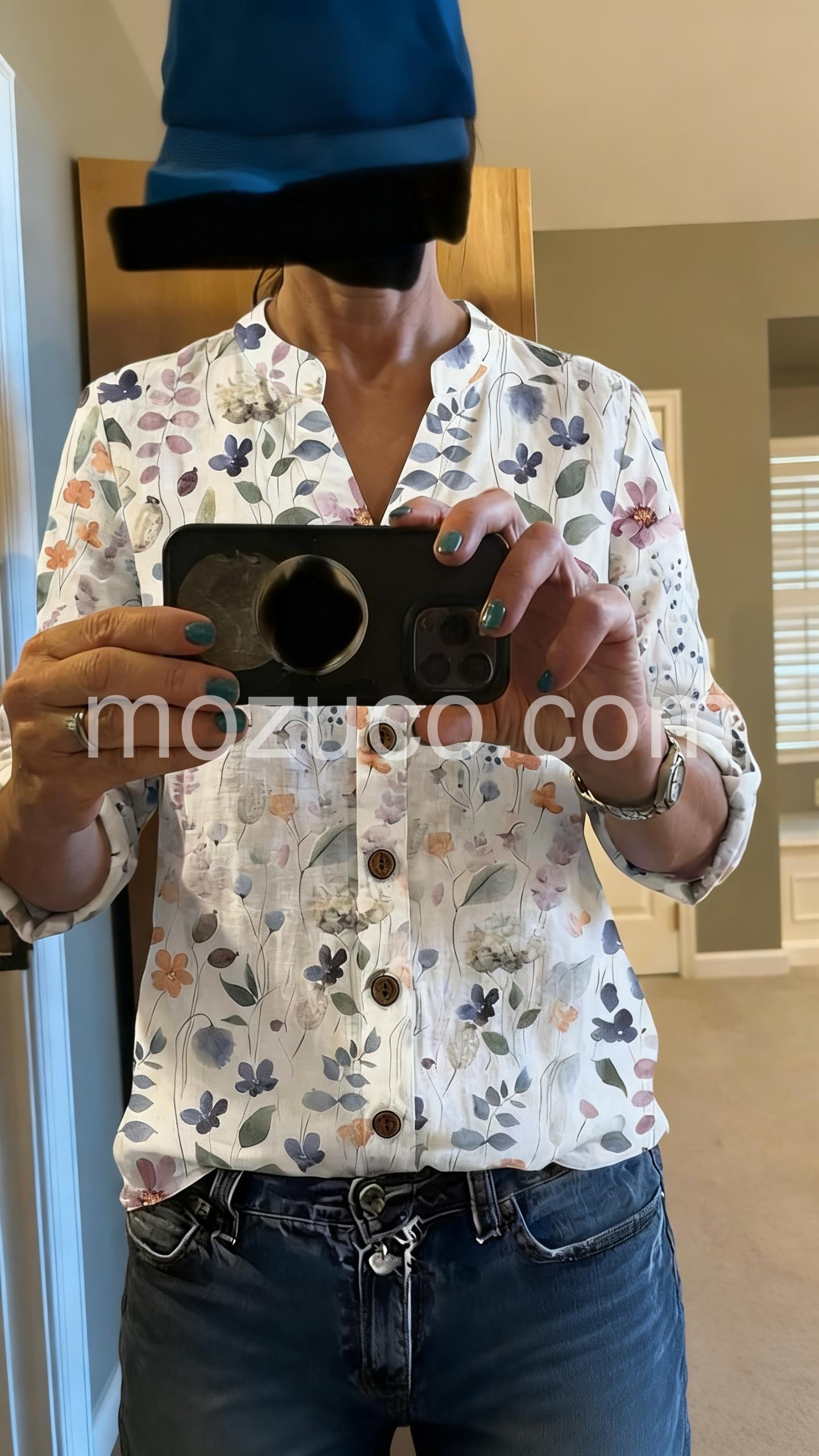 Great everyday shirt. It is casual enough for running errands but cute enough for a lunch date. The button-down style is classic and the floral print makes it feel fresh and fun.