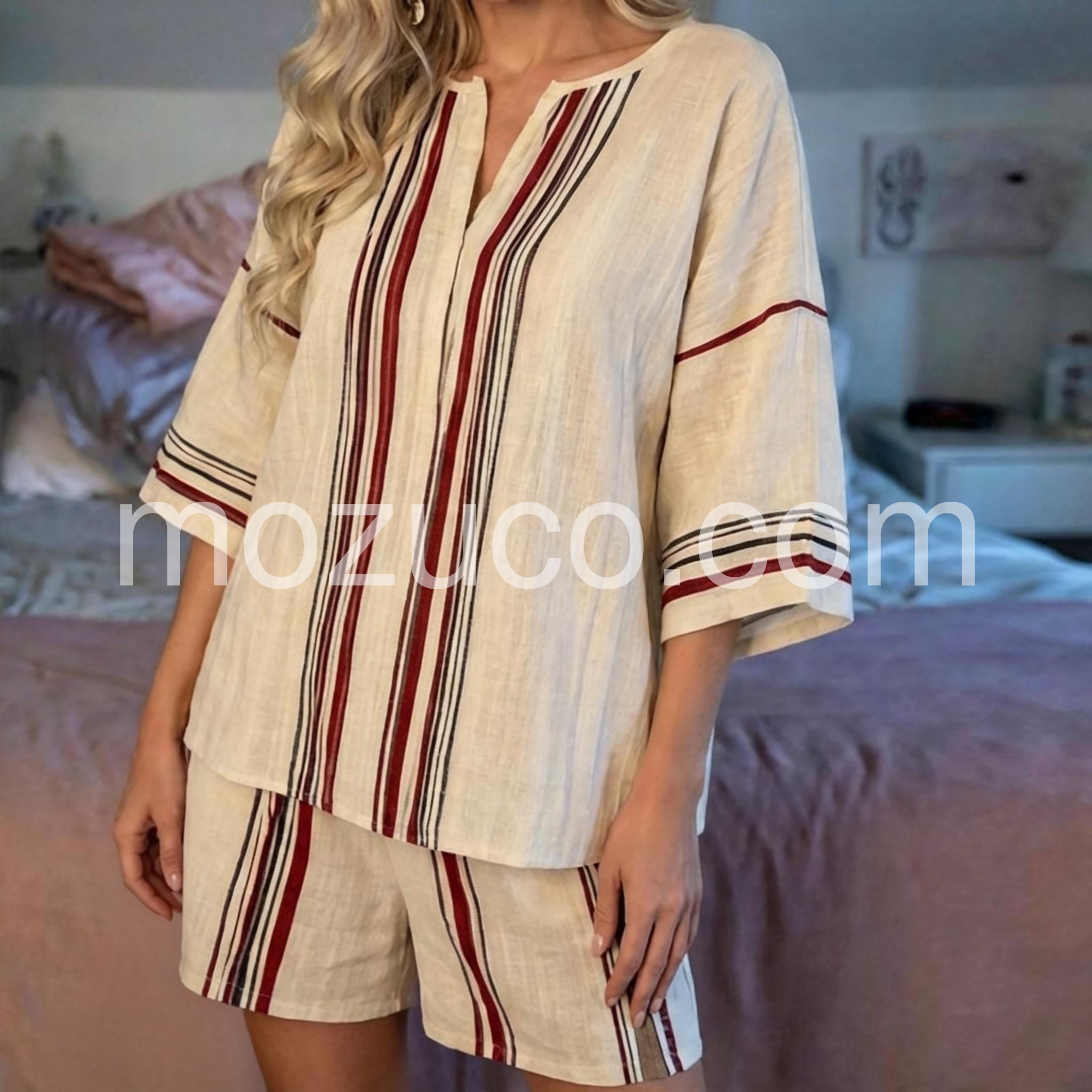 I bought this set for my trip to Greece and it was perfect! The material is so lightweight and breathable, which was exactly what I needed for the hot weather. It looks chic but feels like pajamas. Highly recommend!