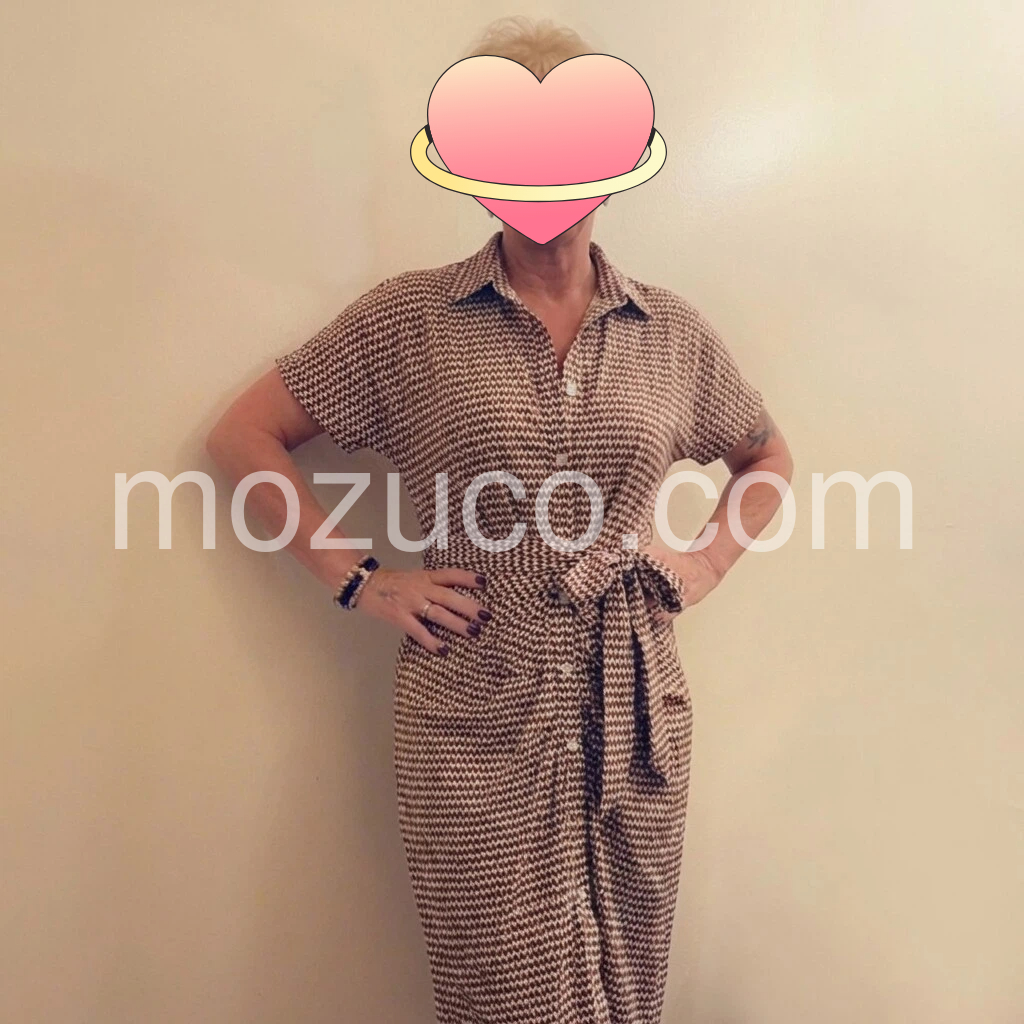 I’m really happy with this dress. The pattern is cute and it looks exactly like the photos. The V-neck and short sleeves are flattering, and the waist tie lets me adjust the fit for a nice shape. The fabric feels comfortable and not stiff, and it drapes well so it’s easy to wear. Overall, it’s a great casual summer dress.