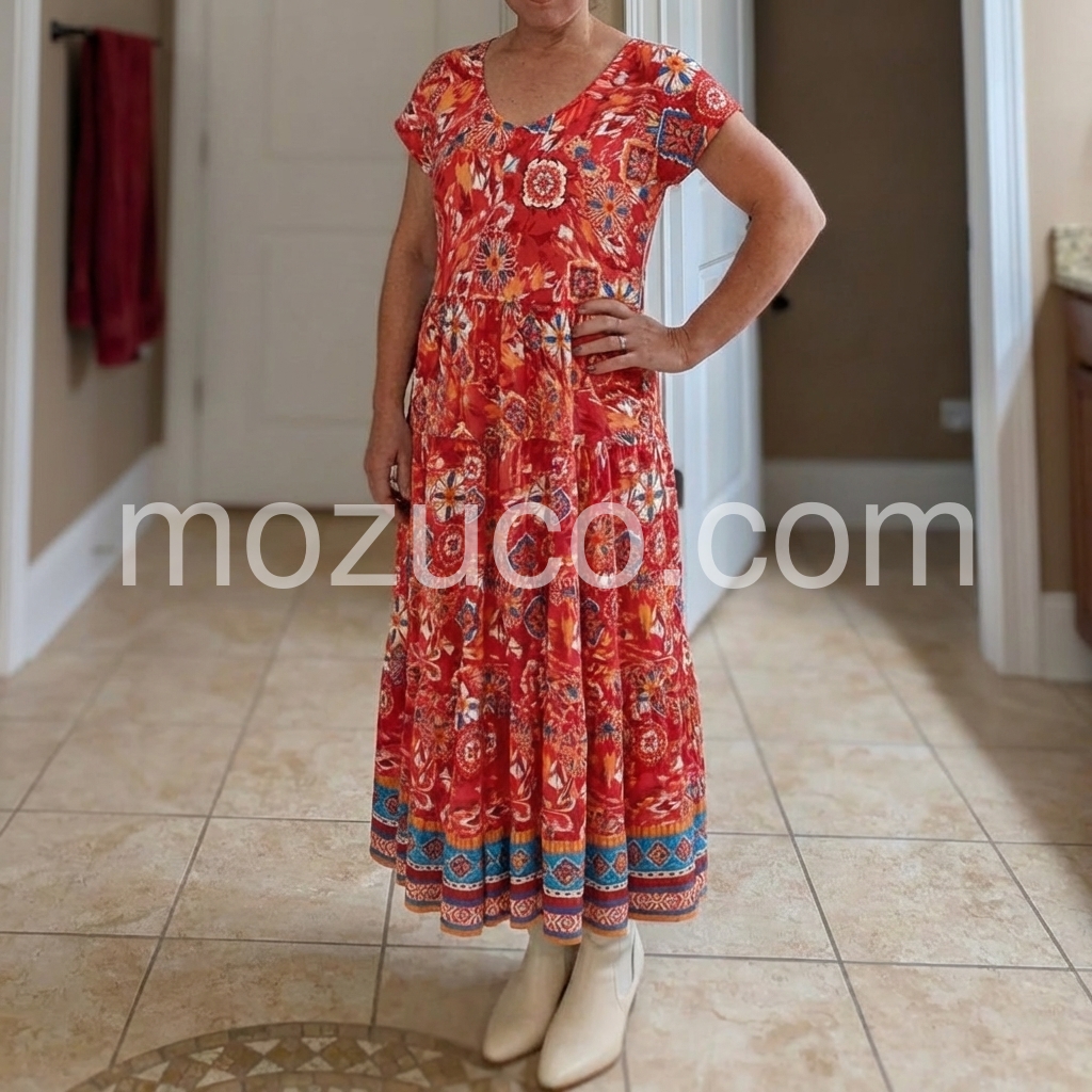 Absolutely love this dress for my summer vacation! The fabric is incredibly lightweight and breathable, perfect for hot days. The red color is vibrant and the bohemian pattern is even prettier in person.