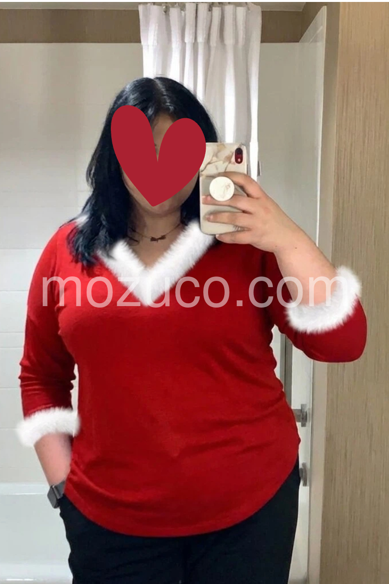 I absolutely love this top, the deep red color looks so rich and the white faux fur trim at the neckline makes it feel warm, cozy, and classy at the same time. It’s flattering on the body and the V-shape detail really elevates the whole look. I’ve already worn it with jeans and got compliments right away—this is definitely a piece I’ll reach for often.