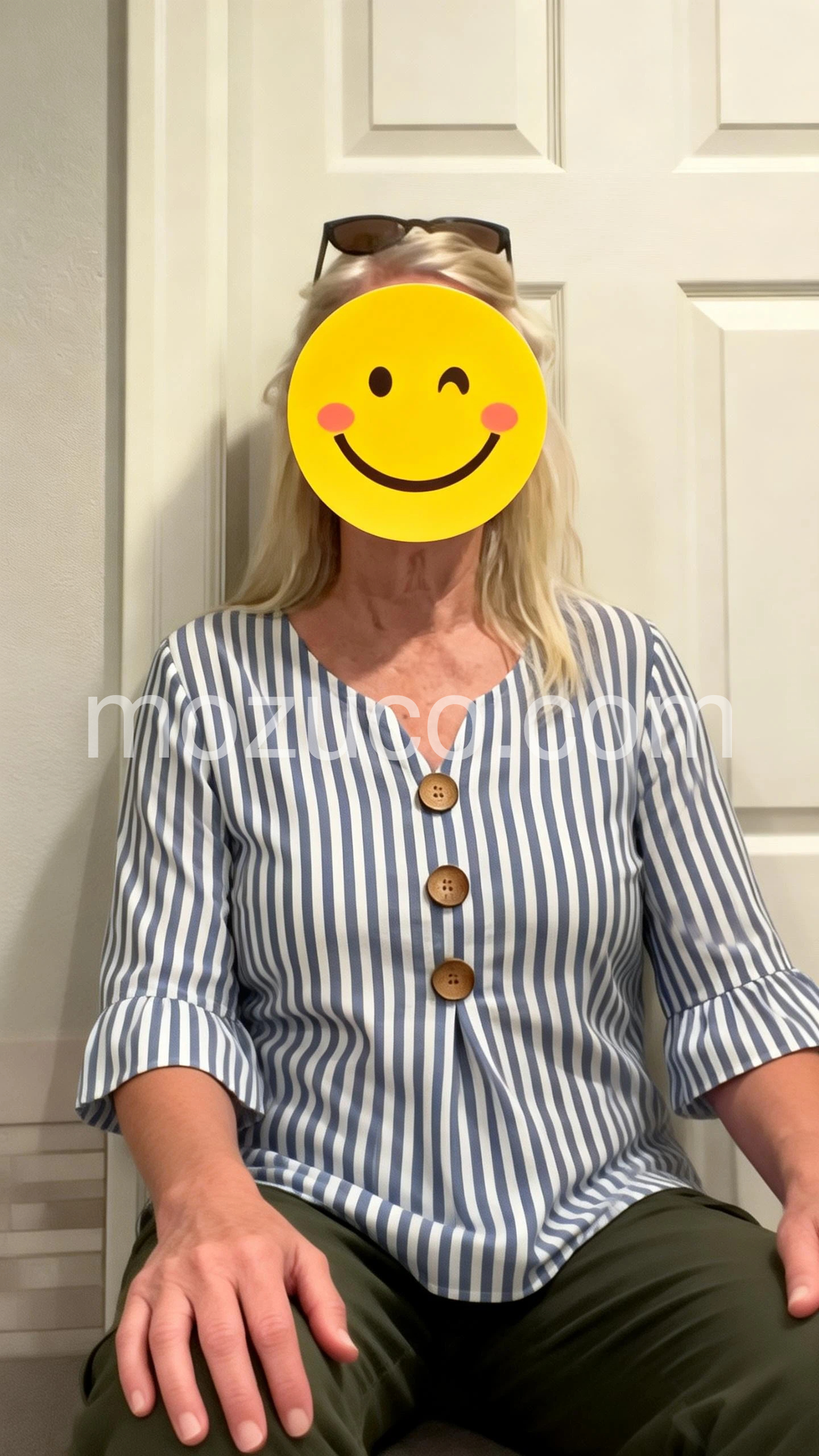 This top is exactly what I was looking for. The vertical stripes are very slimming, and the flowy fit hides my tummy perfectly. The wooden buttons are a great detail. It looks amazing with my favorite pair of jeans.