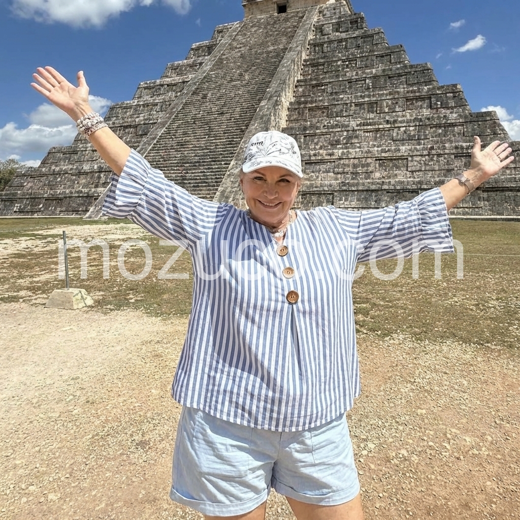 I absolutely love this blouse! I wore it yesterday on an excursion to the pyramids in Chichen-Itza, Yukatan. It was soooo comfortable. The material is super soft and seems of good quality. The size is perfect. It was super hot yesterday, yet I didn’t sweat or overheat in this top.