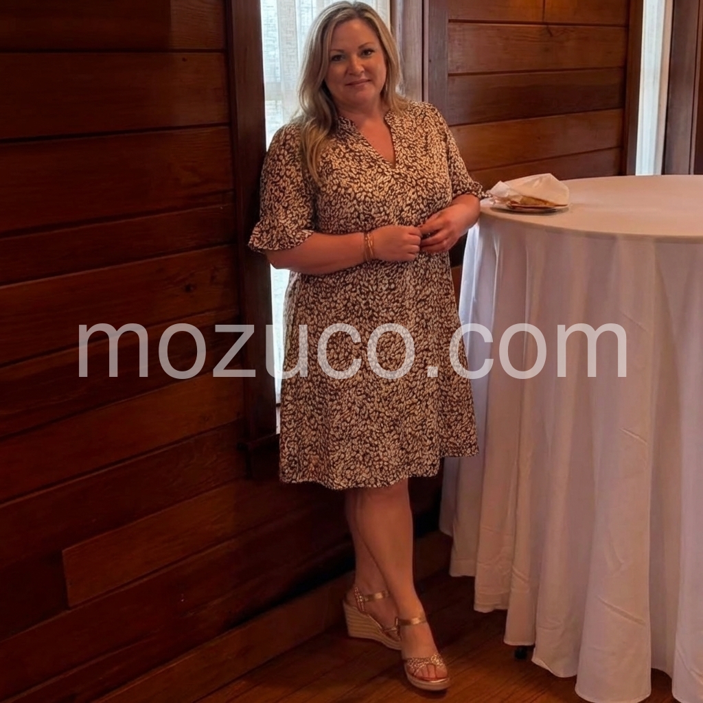 This dress is incredibly comfortable and lightweight. The earthy print is beautiful and I love the little ruffle detail on the sleeves. Perfect for warm summer days.