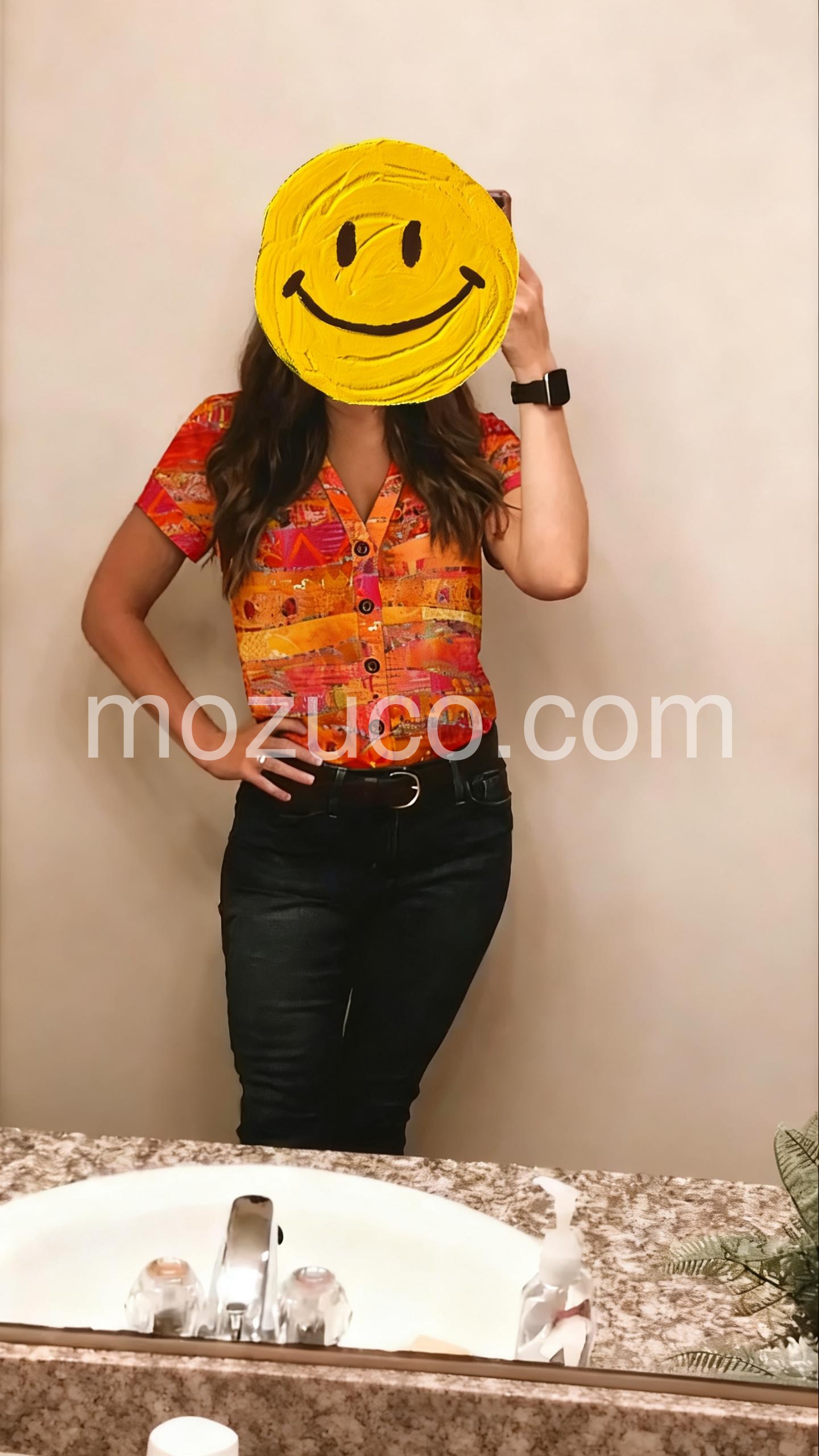 I absolutely love the vibrant colors on this top! It is exactly as pictured. The orange and pink hues are perfect for summer. The fit is incredibly flattering and the material feels very breathable. I wore it to a casual brunch and received so many compliments.