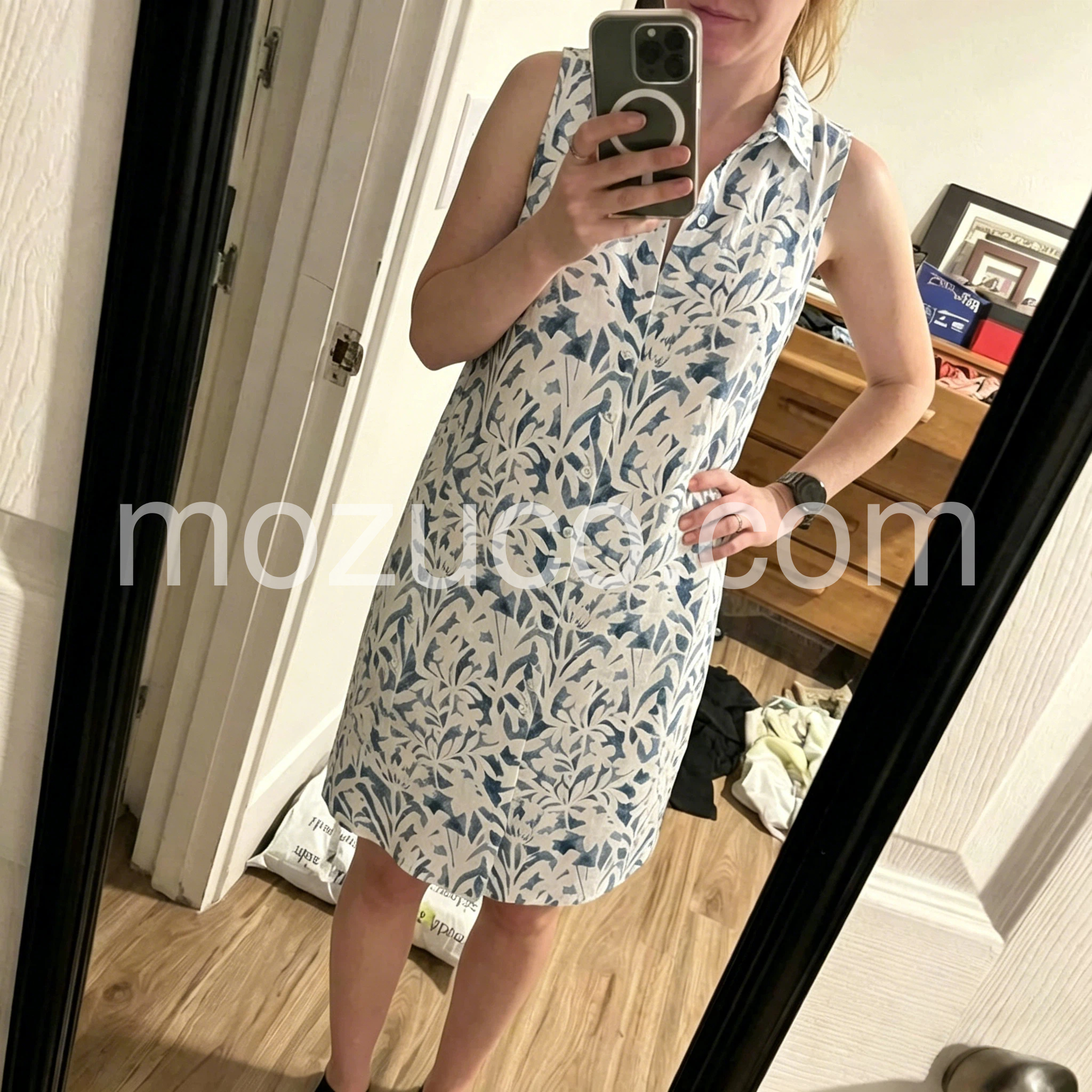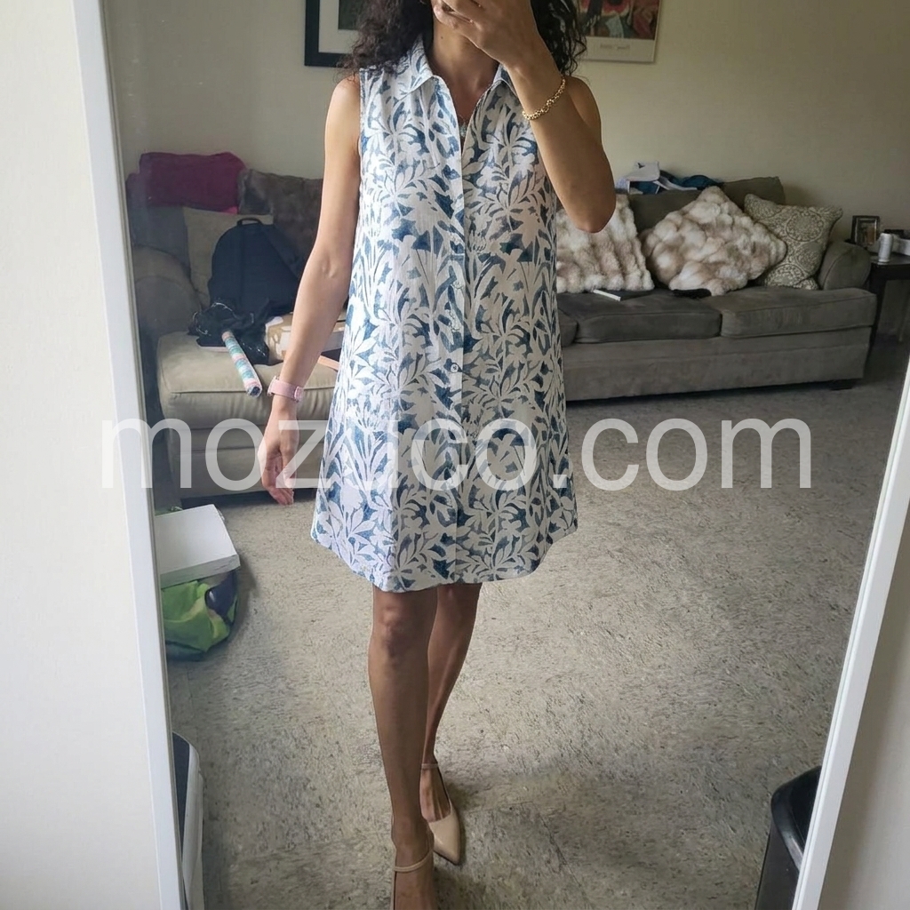 I love the relaxed fit of this dress. It is not too tight, making it perfect for hot summer days. The button-down style is very classic and flattering.
