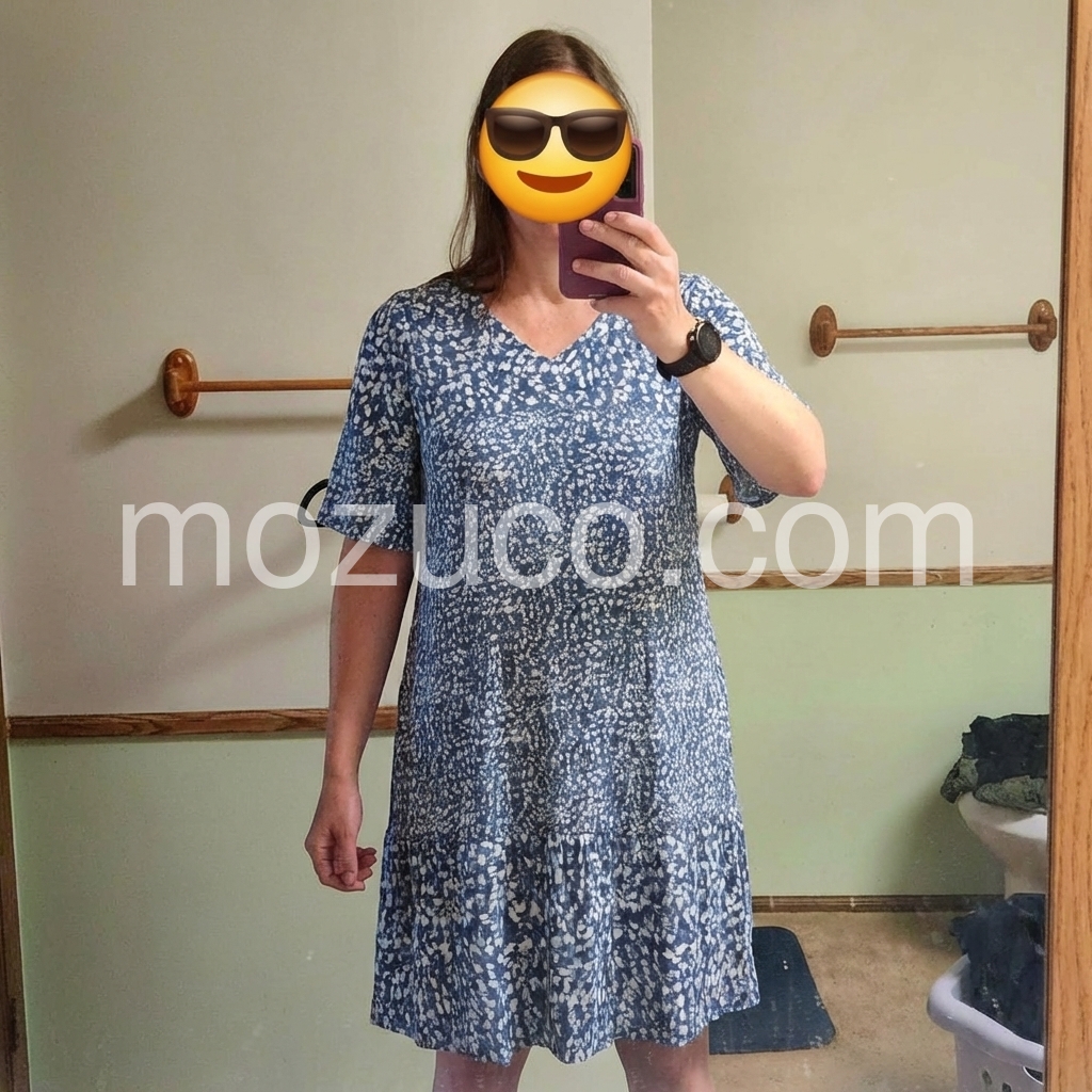 Absolutely love this dress! The blue and white pattern is so pretty and perfect for summer. It fits incredibly well, loose enough to be comfortable but still gives a nice shape.
