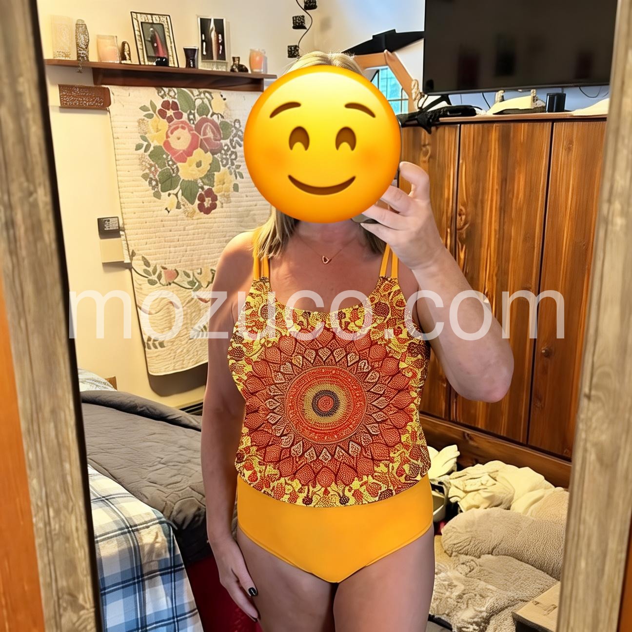 Beautiful. More gorgeous than the pics. Fits beautifully and has very good tummy control . True to size.