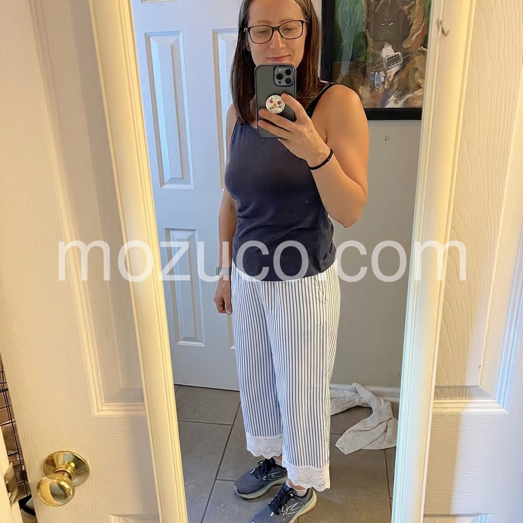 This is my new favorite summer dress. The pockets are deep enough for my phone and the fit is incredibly comfortable. The striped pattern and lace trim look exactly like the pictures.