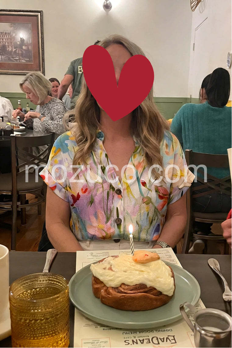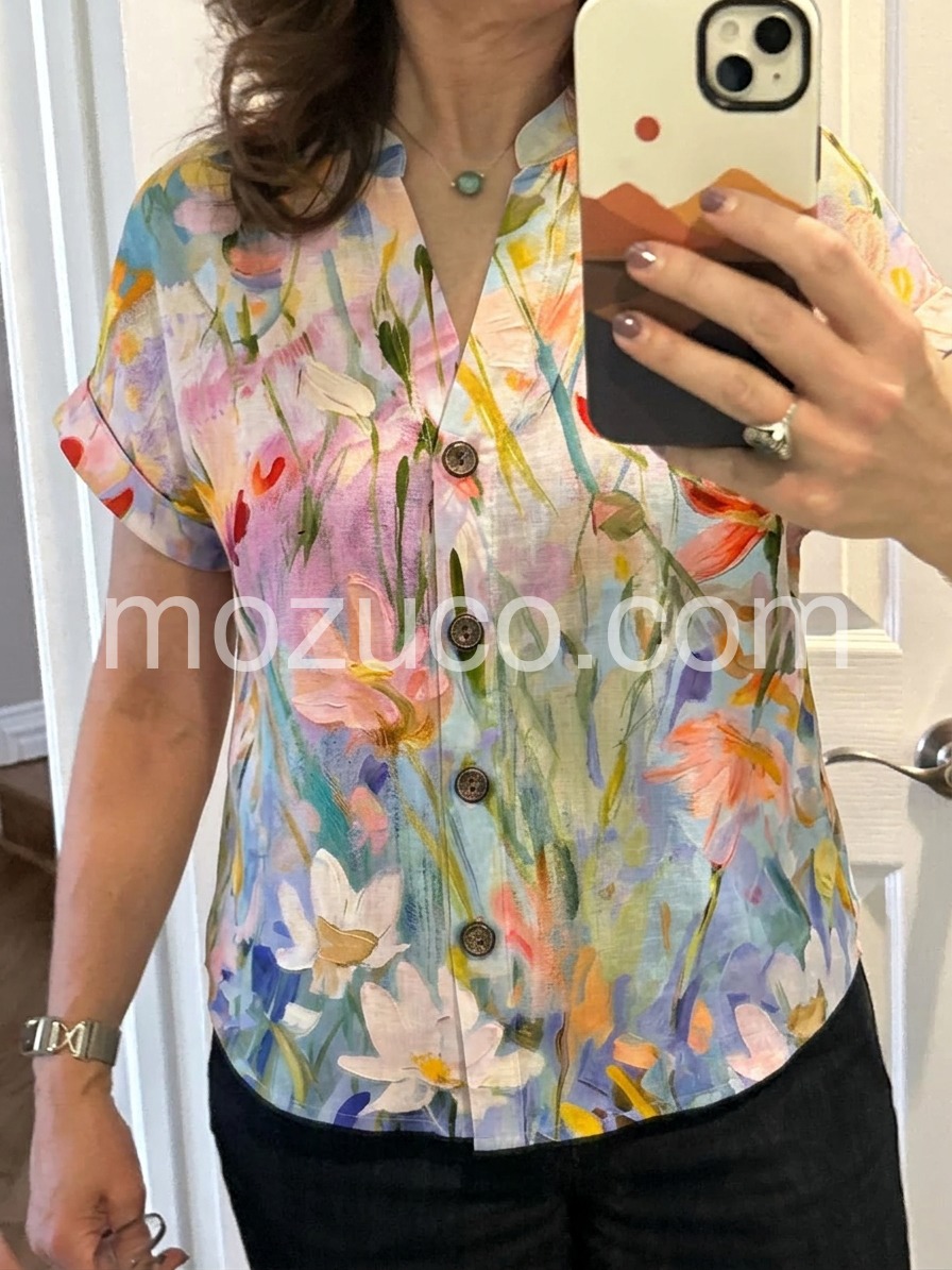 This blouse is absolutely gorgeous! The floral print looks like a watercolor painting, and the pastel colors are so vibrant and perfect for spring. I wore it to a garden party and received so many compliments.