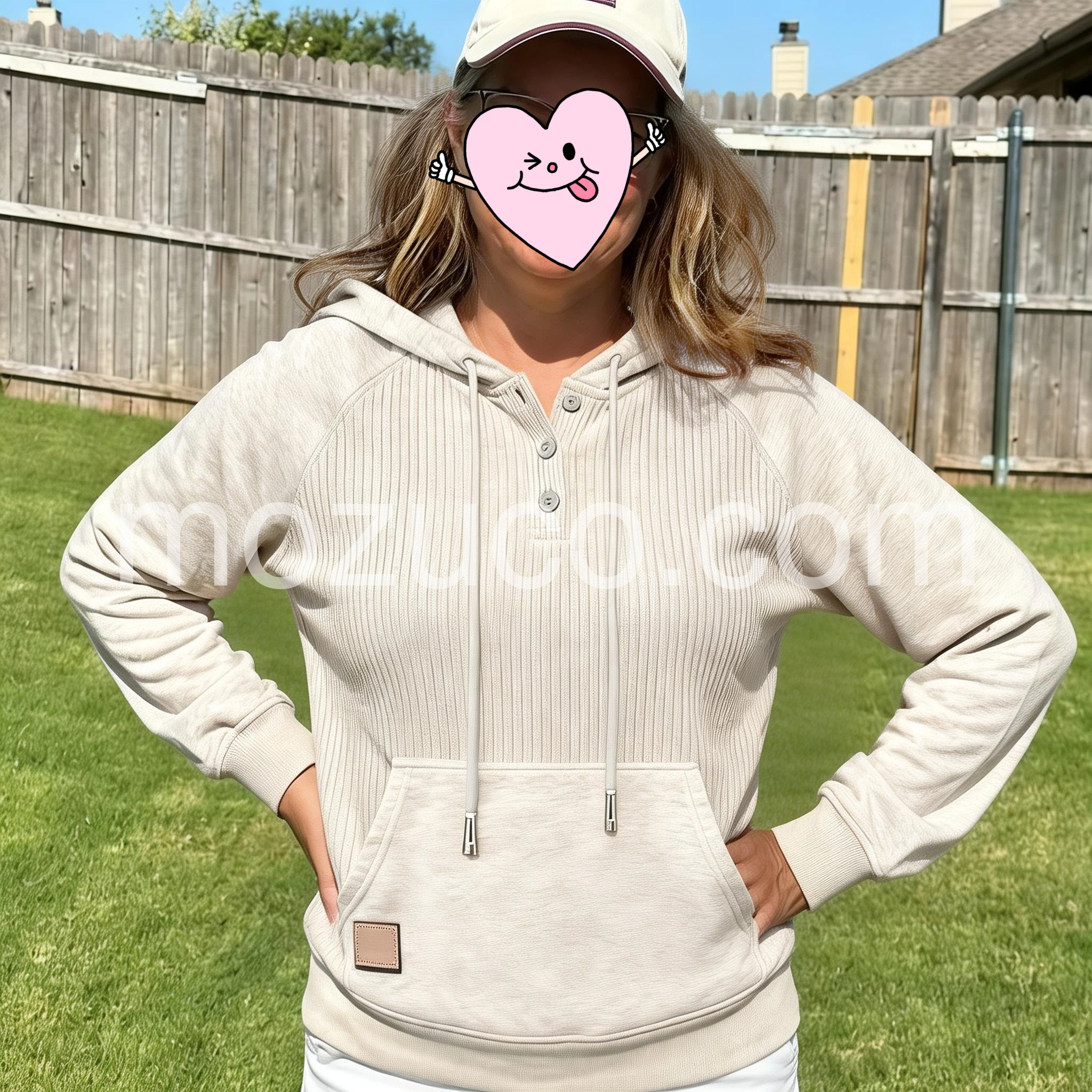 Comfy Plain Ribbed Knit Hoodie Button Front Sweatshirt