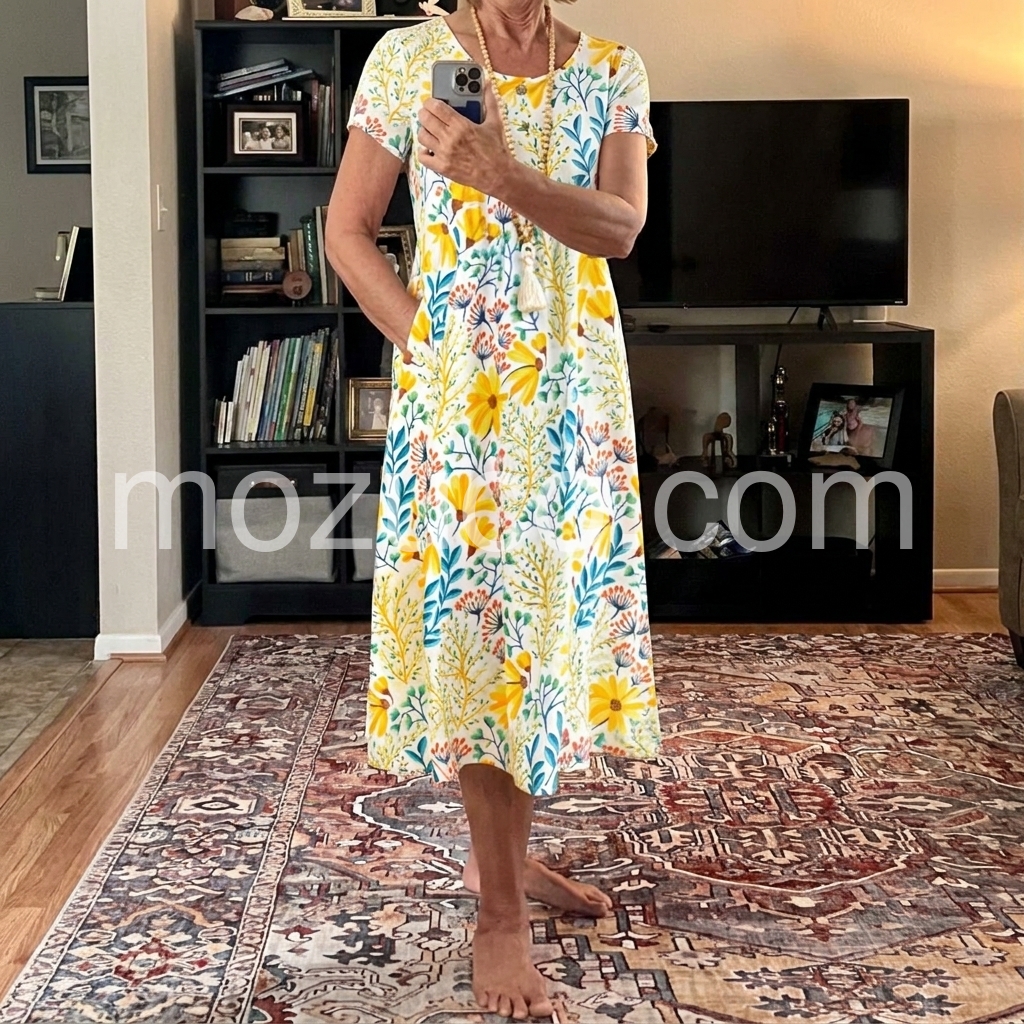 Absolutely love this dress! The floral pattern is so vibrant and perfect for summer. The material is lightweight and breathable, making it my go-to for hot days. I paired it with a straw bag just like the picture and got so many compliments!