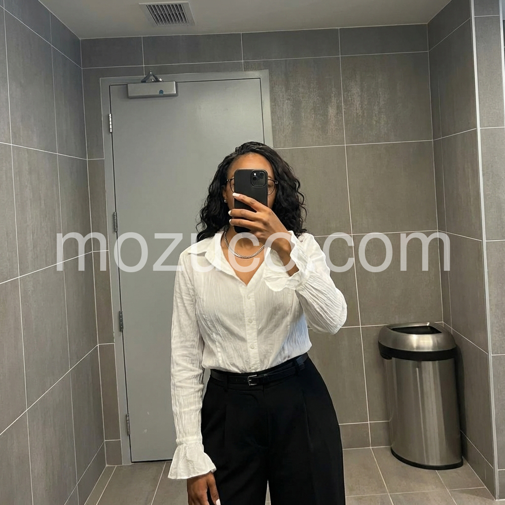 The design of this shirt is so elegant. The crisp white tone gives a fresh, clean look, and the tailored structure makes it feel refined. I especially love the slightly relaxed fit—comfortable, flattering, and not overly complicated. It’s a great piece to style with necklaces and denim, and it makes the whole outfit look intentional.