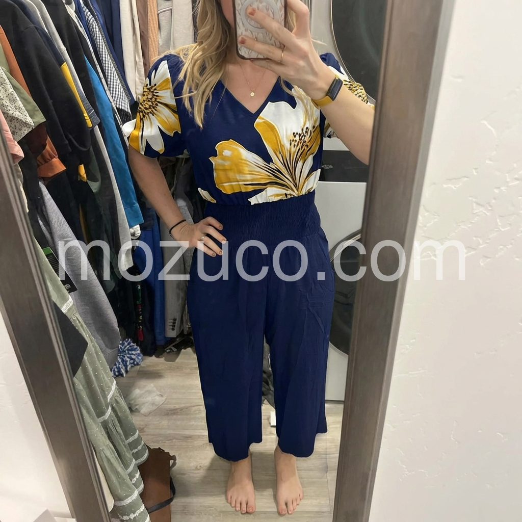 Absolutely love this jumpsuit! The material is lightweight and breathable, perfect for summer. And it has pockets! The elastic waist is super flattering and comfortable.