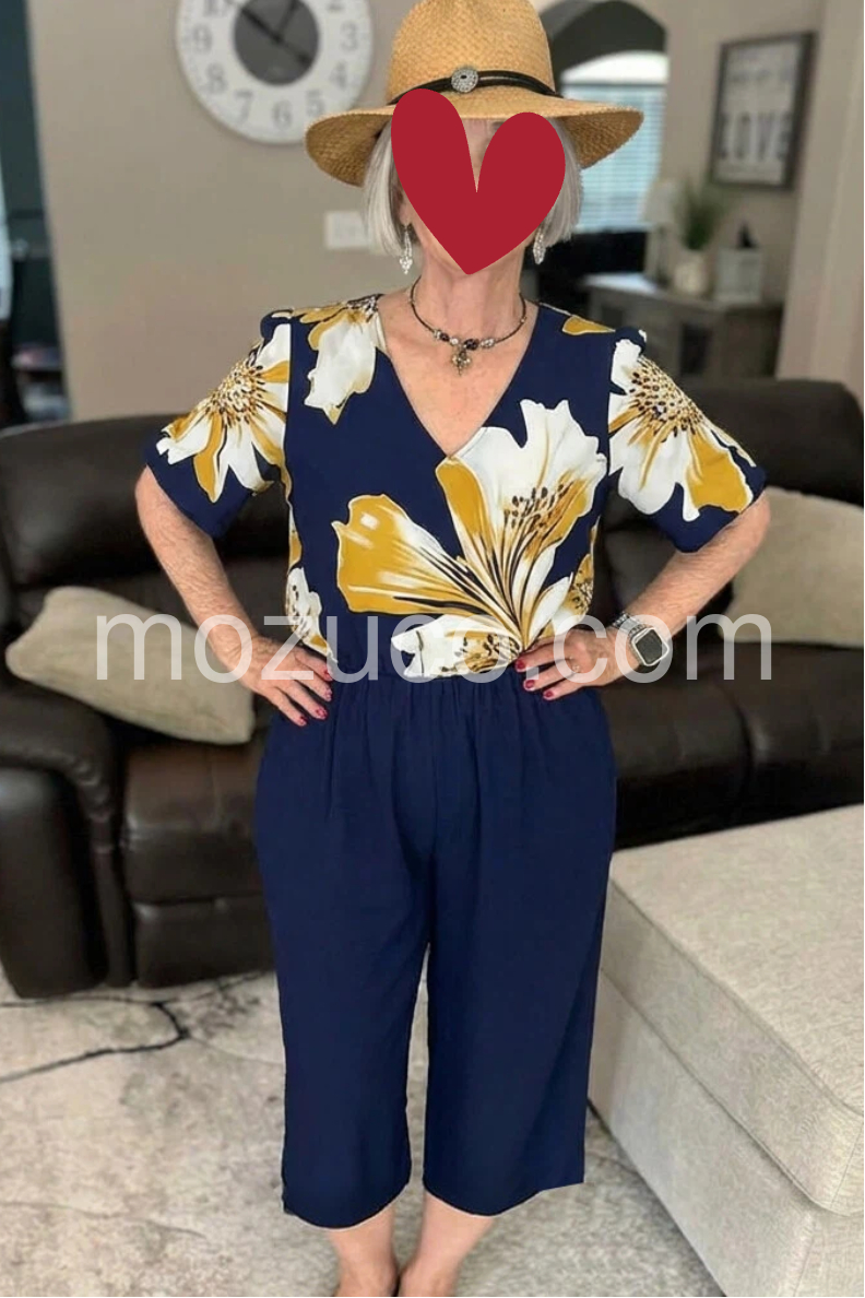 Every time I wear this outfit, somebody stops me to ask where I got it. The navy blue and yellow contrast is absolutely stunning. It is so comfortable I could sleep in it.